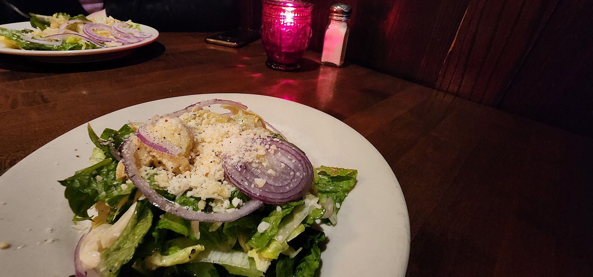 Read moreWe went back and I had the chicken panini...the chicken was moist and tender! The service was insanely fast. The panini bread component was more like a toasted bun but it worked well. Originalreview follows... We got to the location and found the parking lot almost full...figured we'd be eating elsewhere...but alas, we got right in! There are a lot of businesses using the lot and a lot of the tables in the restaurant were filled with people gathering with friends, so likely nearly 1 car per 1 or 2 people. The bar was super crowded with people who seemed to be having a great time talking to each other. The restaurant was also nicely full! Everyone seemed to be having an enjoyable time. That did make things fairly loud...but conversation was still achievable. Service was super fast and staff was very attentive. You may see lots of empty tables in my photo, but that was we left and was approaching 8 pm on a Monday....it was not empty as we entered. This place is popular. Back to the food. The basic side salad was fantastic. Cold, crisp, and full of nice flavors. The waiter suggested splitting one salad by the 2 of us and that was a perfect amount of salad for each of us. The main course was very good. Flavors were good. My wife's salmon dish was very good. My chicken dish was good. The breadt meat was pretty flattened and a bit tough, I am sort of used to thicker tender cuts of chicken. The dessert was great. Salted Caramel Gelato.. with caramel sauce. It was really spectacular. It was a great meal. We enjoyed the food and...