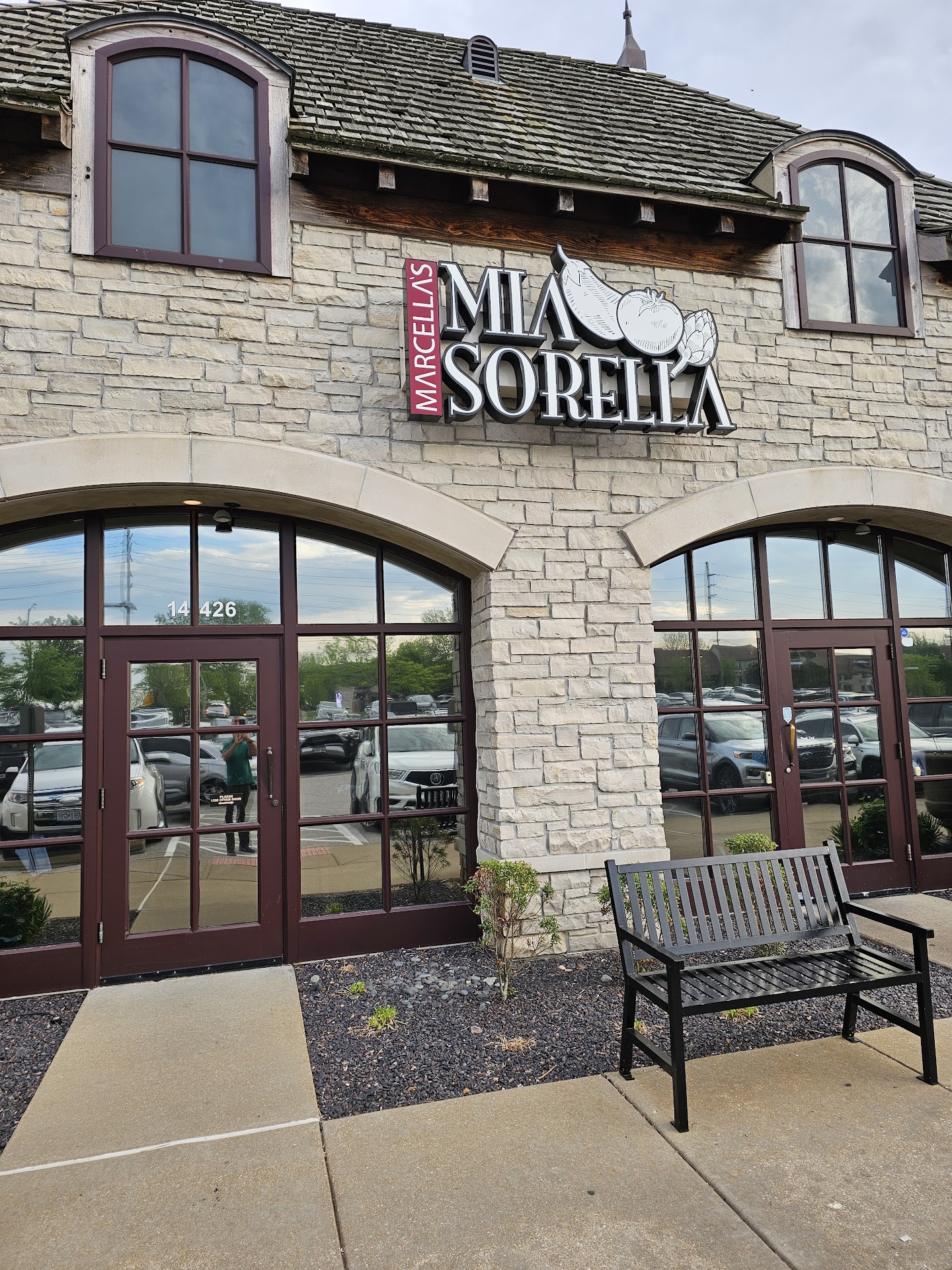 If you are following me. You may know I have 2 points I mention in my reviews often. That I dine with my wife and her college friend and husband monthly. The other is garlic, and my wife does not get along well. Tonight was county 's turn to pick restaurants. They chose Mia Sorella, the sister restaurant, to our city restaurant, Trattoria Marcella . The food was fantastic, the atmosphere was great, and the service was top-notch. We started with an appetizer, the eggplant Parmigiano . This was very flavorful of lots of cheese and melt in your mouth tenderness eggplant. we ordered wine , red and white. The red was a route stock Cabernet. I had a Chardonnay that was light but with a buttery finish. The route stock was smooth all throughout with a little earthy taste with plum accents. We split the bill since each couple had the same dish. The men had the lasagna, and the ladies had the chicken Risotto . I flipped back and forth on getting the Risotto or not but was pleased I chose the lasagna. Besides, my wife could not eat all of hers, and I had it for lunch the next day. Our lasagna was delicious, sweet, meaty flavors. The thin layers of noodles were tender with a good mouth feel. Once I took the first bite, it was really hard to stop eating . The Risotto was chicken in a creamy white sauce with lemons,asparagus, mushroom, and parmesan. This too was delicious. You can not go wrong with either of the restaurants. It s a tribute to moma Marcella. Trattoria has been around 30 years, and Mia Sorella has been cooking up favorites for 13 years. I believe. Lastly, service is top notch at both, but the service from Rachel, our server at Mia Sorella, was above and beyond. Go visit Rachel and enjoy a pleasant night out on the patio...