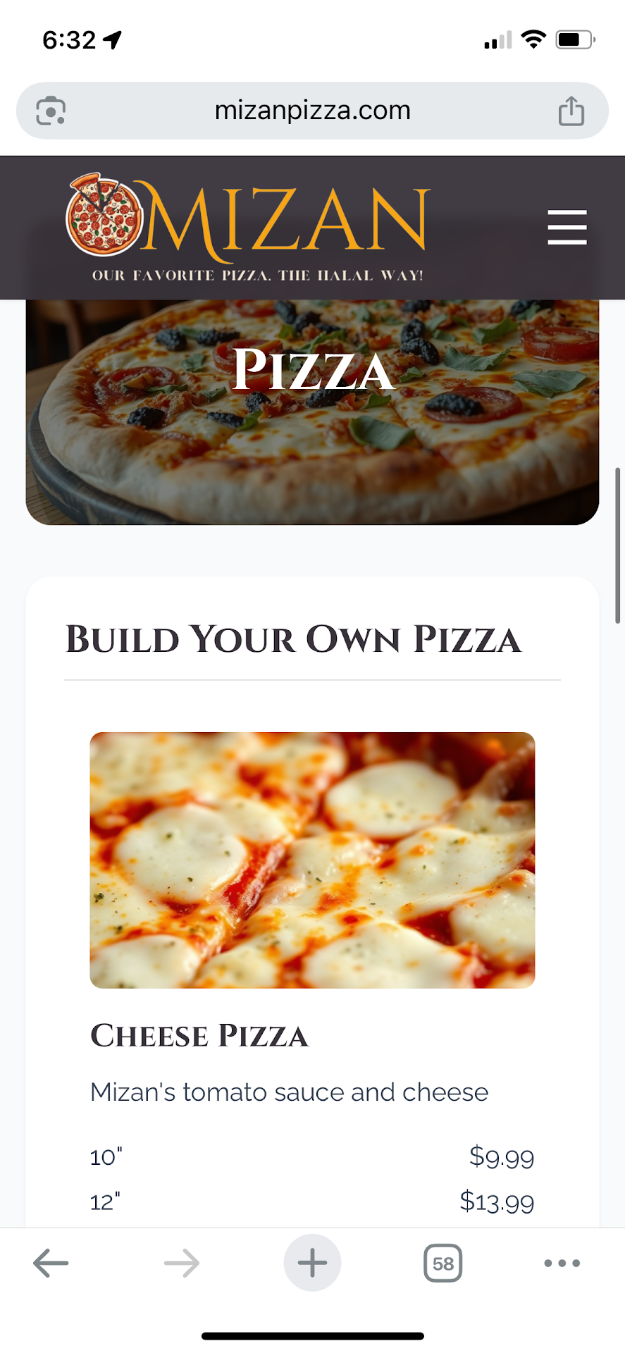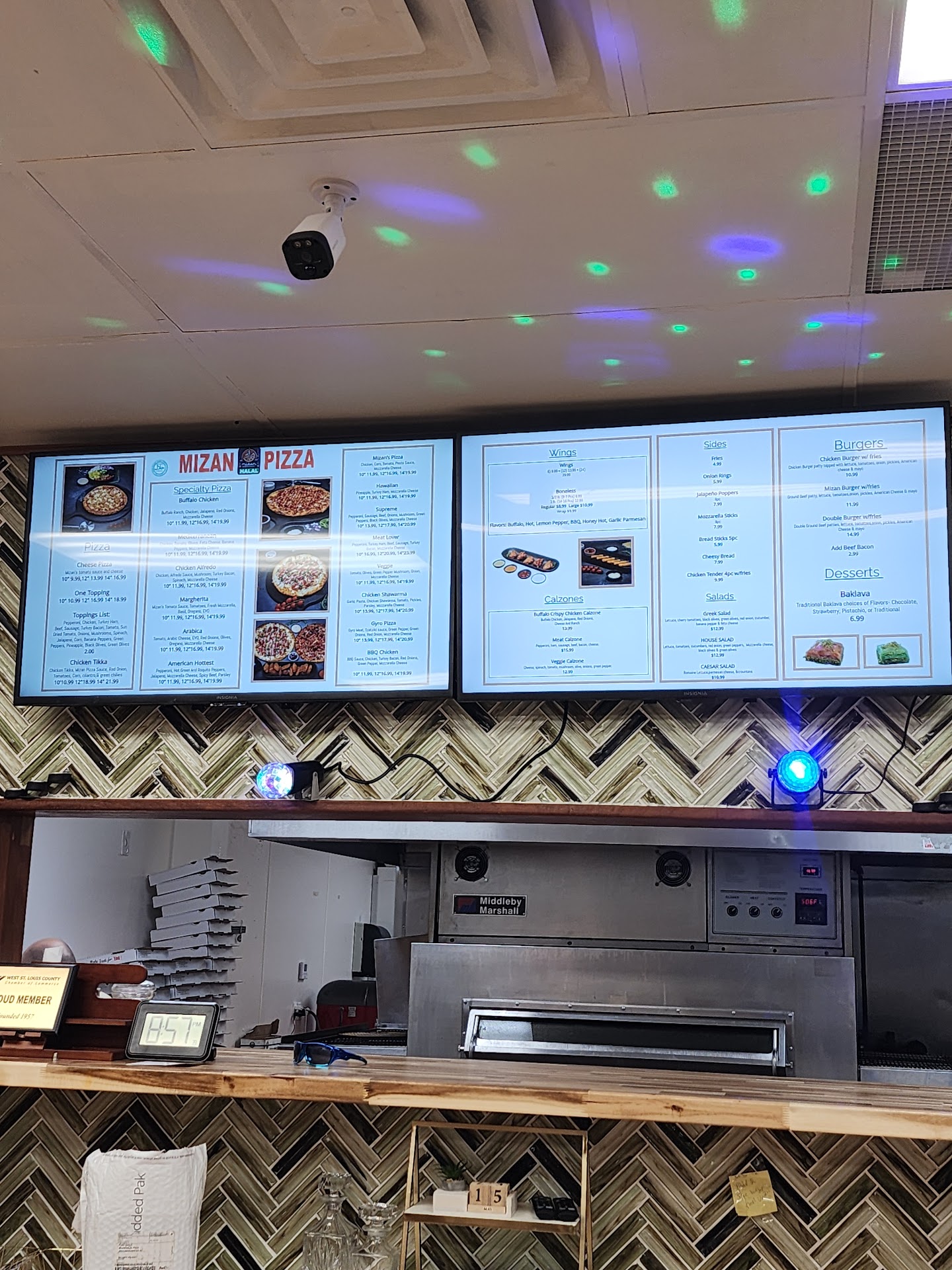 We tried Mizan for the first time today. We got the cheese pizza and some honey hot wings. First, while they didn’t give me much information about total or when it would be ready, only, “it will re ready soon.” It was very quick, so A+ on the speed! The wings were HEAVILY breaded and were soaking in sauce. For big fans of wings, I’d skip these. The flavor of the sauce was good but too much breading and soggy from the excessive sauce. The pizza was really the biggest letdown. The picture online showed fresh mozzarella. It came as about the most basic cheese pizza, with just a mild taste. Nothing to rave about. Maybe we’ll try one of the specialty pizzas next time, but it may be a while before returning. It was...