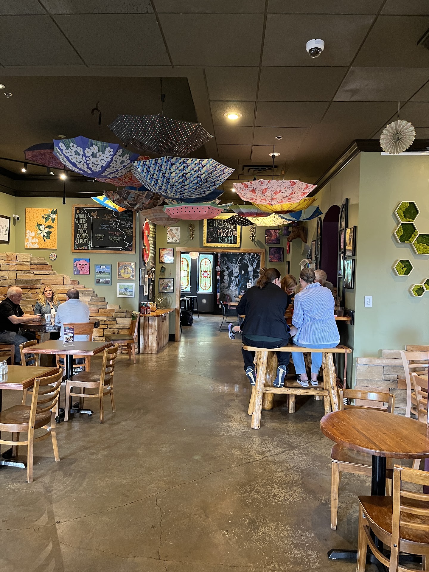Β Β Β Read moreI was working way out here the other day and finally had an excuse to give this place a try! Pick up a menu at the counter and find yourself a table. The back room (where the stage for musical performances is) has normal tables and chairs. But in the front room are a few long, picnic table high-tops with tall benches. They look pretty cool, but I can't say I was interested in sitting there - haha!