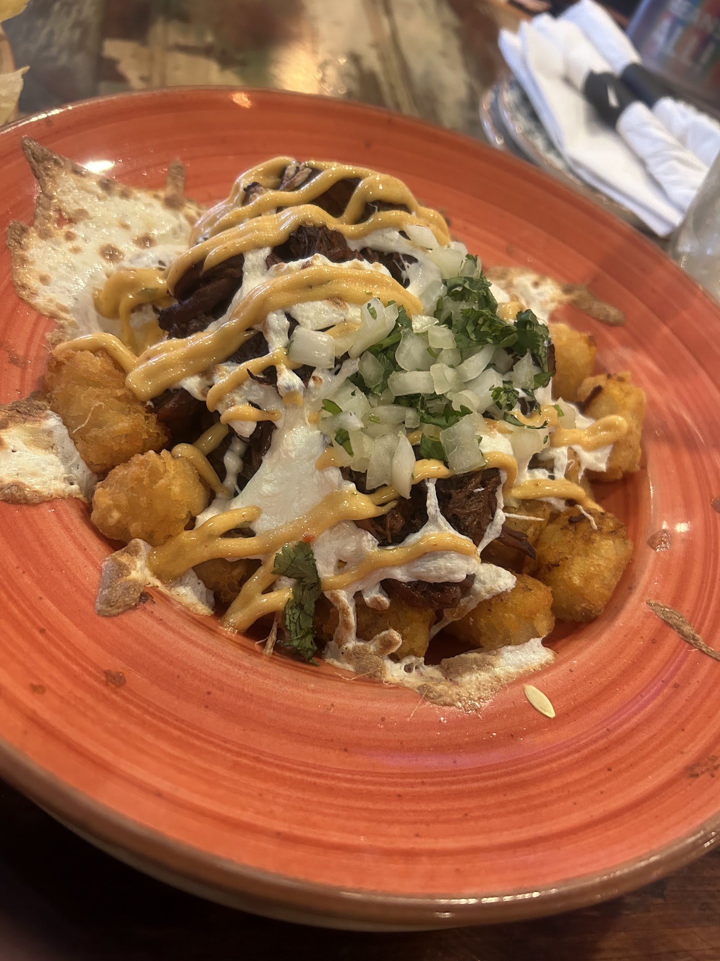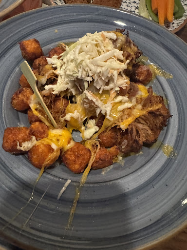 My recent visit to Alexander's Tavern was a truly satisfying experience, proving it to be a fantastic spot for delicious comfort food in a relaxed setting. The atmosphere was exactly what you'd hope for in a neighborhood tavern—welcoming, lively, and unpretentious, making it easy to settle in and enjoy the meal. What truly stood out during my visit were the BBQ pulled pork tater tots. As the photos clearly show, these were an absolute masterpiece of pub grub. The first image displays a generous mound of perfectly golden, crispy tater tots, smothered in a gooey, rich layer of melted cheese and crispy bacon bits. This alone looked incredibly appealing. However, the second image truly captures the star of the show: the BBQ pulled pork added on top. The succulent, tender pulled pork was piled high, generously sauced with what appeared to be a rich, tangy BBQ sauce, and then topped with a refreshing dollop of coleslaw. The combination of textures and flavors was phenomenal. The crunch of the tots, the creamy melted cheese, the savory and slightly sweet pulled pork, and the cool, crisp coleslaw created a symphony in every bite. It was evident that the pork was slow-cooked to perfection, falling apart effortlessly, and the BBQ sauce was flavorful without being overpowering. This dish is a definite must-try and a testament to Alexander's Tavern's ability to elevate classic comfort food. Beyond this standout dish, the overall experience was excellent. The service was attentive and friendly, ensuring that our drinks were refilled and our needs met without feeling rushed. The casual and inviting ambiance made it a great place to unwind and enjoy good company. In conclusion, Alexander's Tavern is a gem. If you're looking for incredibly satisfying and expertly prepared comfort food, particularly their phenomenal BBQ pulled pork tater tots, this is the place to go. It’s a spot I’ll eagerly recommend and definitely...
