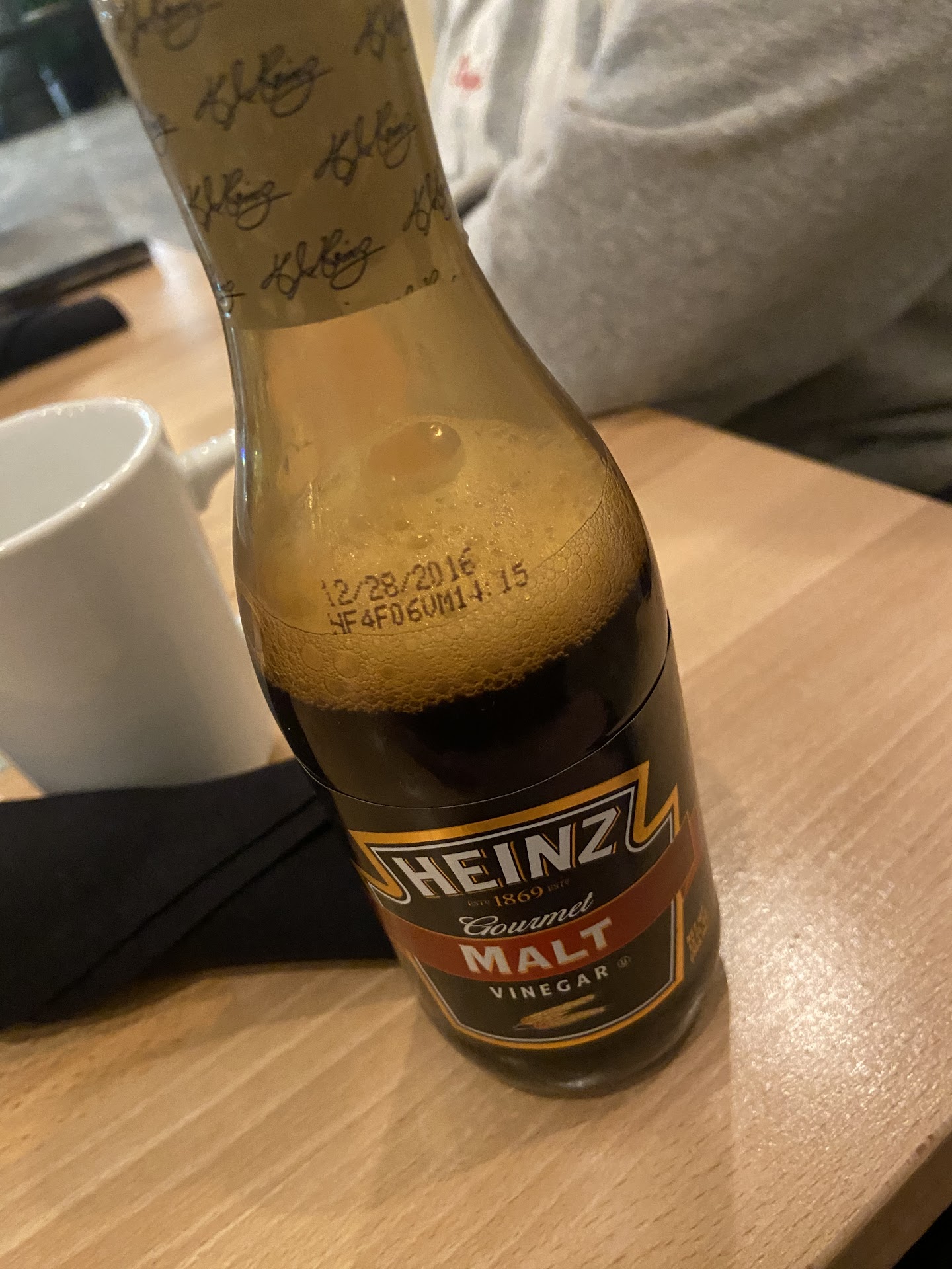 Read moreOverall I was unimpressed, very disappointed. We decided to try it because it was restaurant week. A friend of mine ordered the crab deviled eggs and the crab wasn’t placed on her app and it was bought out in a condiment cup instead. Eggs were under seasoned and had way too much Dijon mustard. I ordered fries as an additional starter with the contingency upon malt vinegar being available it was bought out and inedible because it is expired (pictured below). My sister ordered the quinoa salad which was pretty but taste wise disappointing. Wasn’t enough dressing and the quinoa wasn’t seasoned…. Not enough cheese on the salad if the grain was going to be bland. The food was not hot for the amount of time we waited. Also the plates weren’t heated which cooled my meal done a great deal. The Demi tasted like it was from a pack and the ribs had a good taste but were way overcooked potatoes had no garlic in them. The highlight was the drinks we ordered and the mousse cake. The server was pleasant but I...