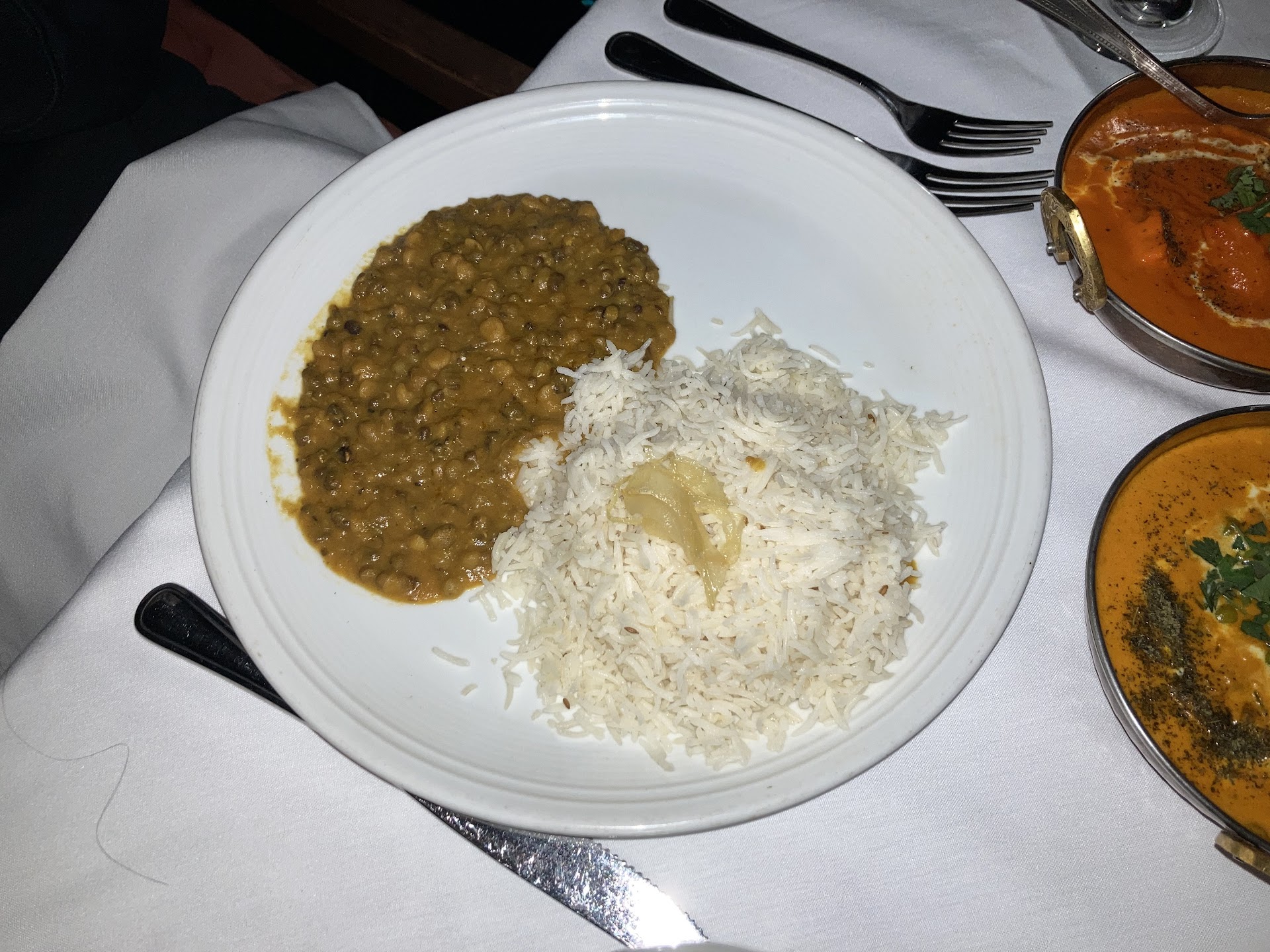 The food was good, but it was not exceptional. While the wine offerings were ok, our waitress was uncertain as to what bottles were available. She made countless trips back to the cellar bringing bottles out while trying to find them on the menu. We ordered both vegetable and meat samosas as appetizers. The presentation was very nice, but to our horror, the waitress picked up each samosa with her bare hands so that she could show us the difference between the two. We were beside ourselves....and it got worse!