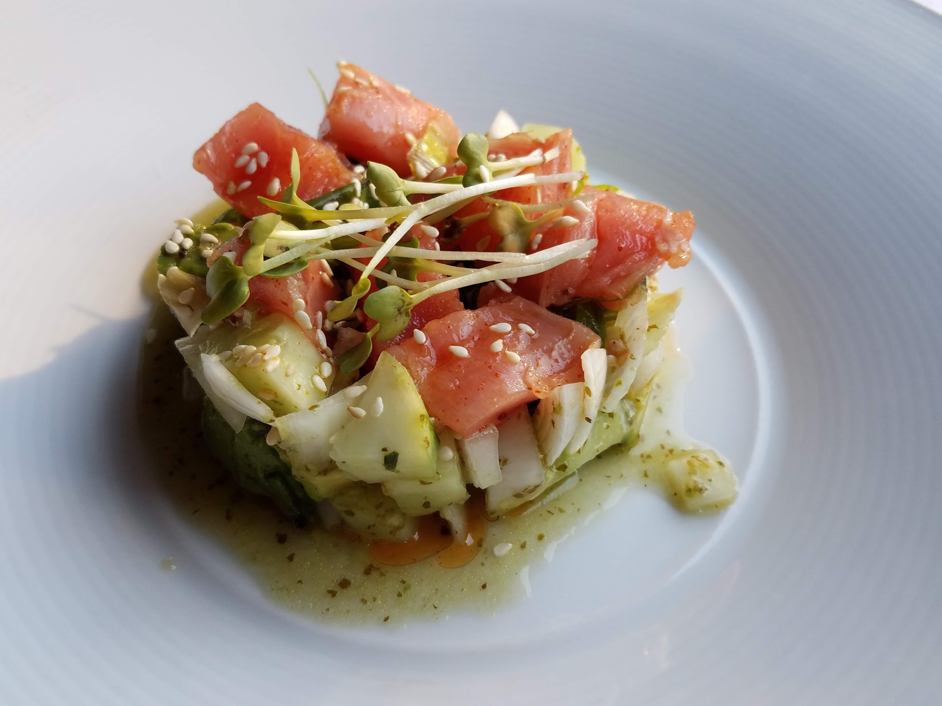 Later in the evening we were served the wrong entrees and desserts. Lastly, she made a special nonalcoholic drink for us. The owner of the establishment was at our table and she was explaining to him what she’d put in the drink. She then leans across our table and sticks her nose in the glass to smell it! The owner looked absolutely mortified.