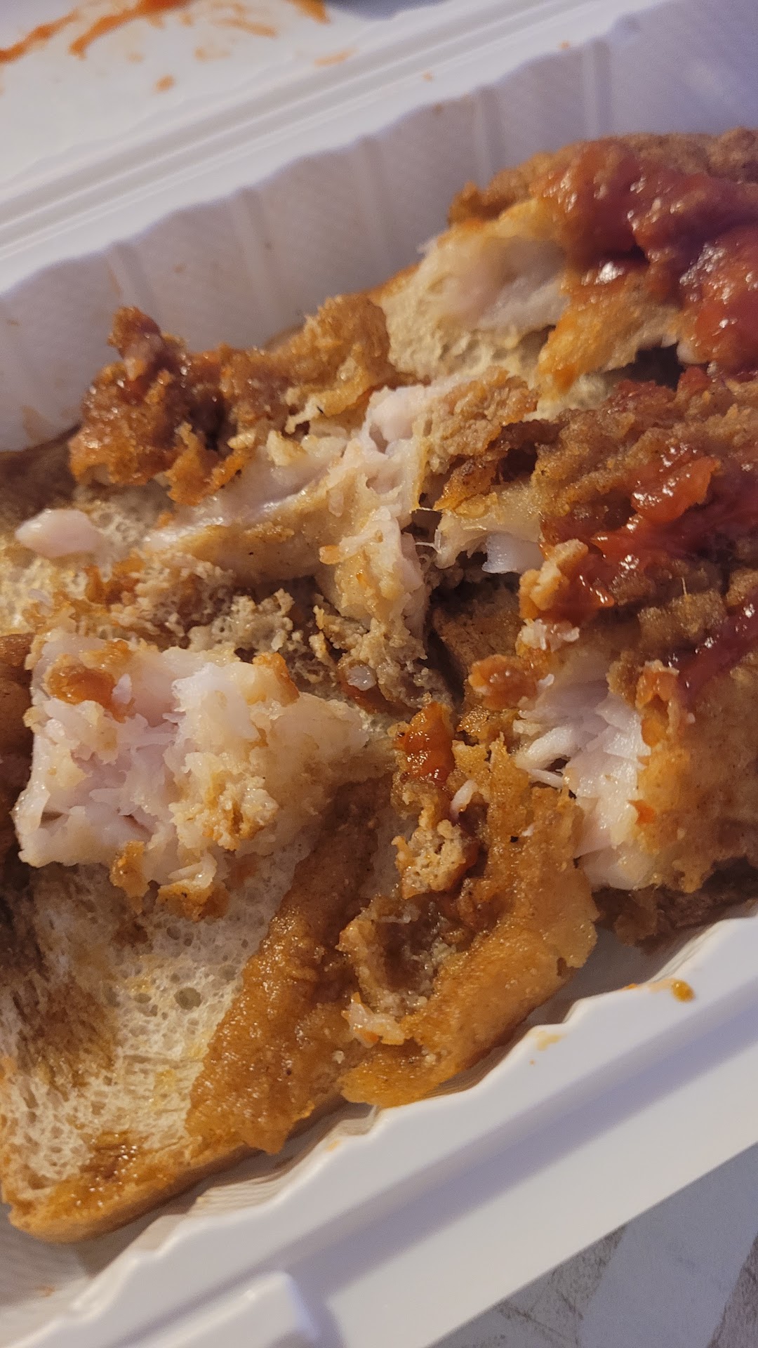 The chicken wings were dark and hard. You can see that they were cooked over like they were leftovers that they put in hot grease t make it appear as a new order. I asked them to cook the wins softly.She said that they had to cook for 15 minutes. If you are heating the wigs you didn't sell ysterday, they don't need 15 minutes. I they them away. Don't purchase cooked food from here. TERRIBLE!!!! Fried Catfsh was fried hard with a tasty coating. Inside thee fish was mushy. This means that they took the fish out of the freezer to thaw in water. When the. Fish is thawed ike this and then cooked. The fish is soften and water gets init. When you cook it, oil gets in it and thefish itsself is mushy. Could also mean that the fish is on the way of becoming spoiled. I threw it away after picking through it and saw that all of the fish was mushy. In a predominantly black neighborhood and selling bad food. Absolutely last visit there. Get wise...