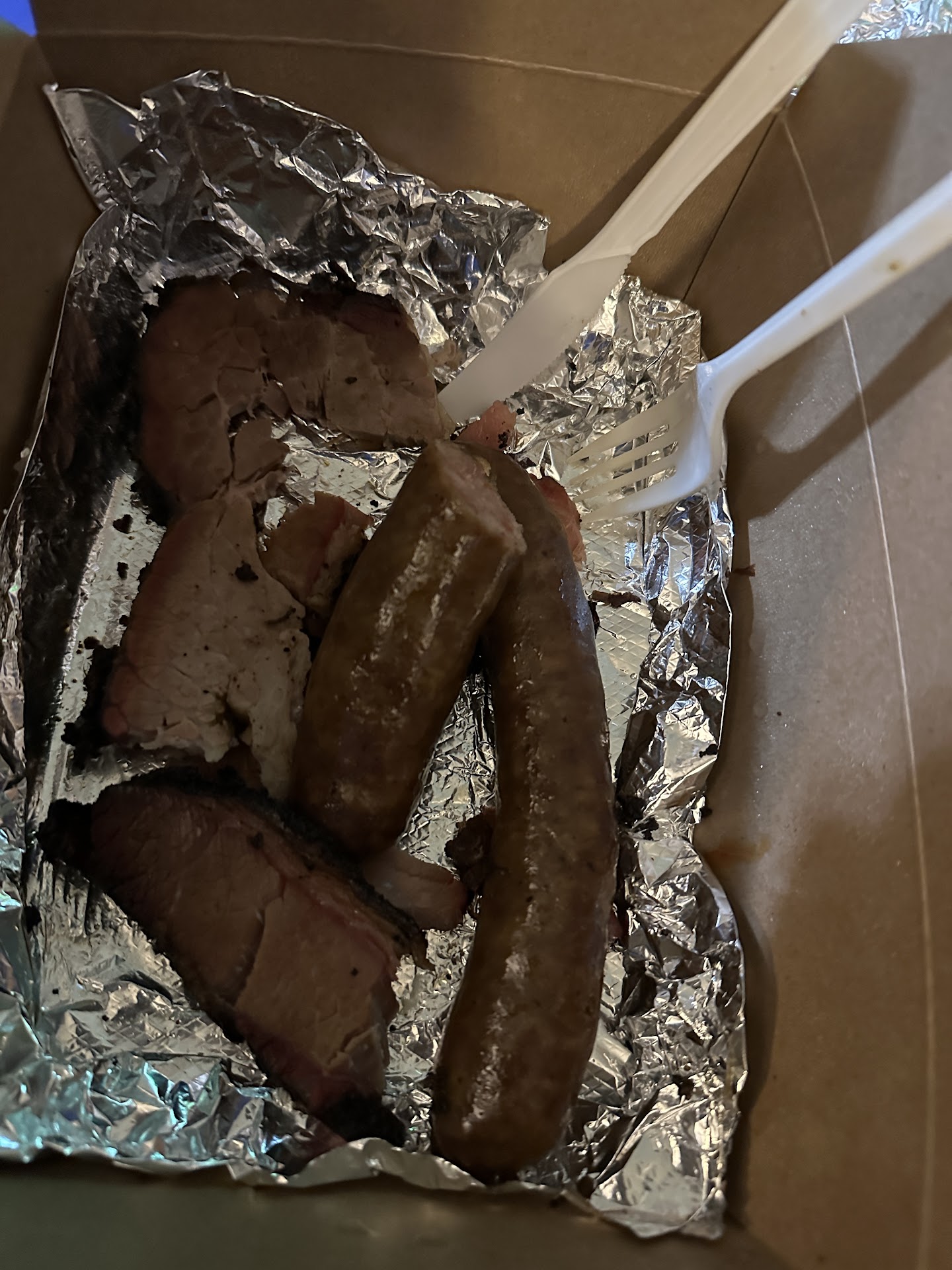 I got the 3 meat plate and my fiancee got the 2 meat plate. All of the meat was dry, flavorless, and lukewarm. Between the 2 of us we had the ribs, sausage, pulled pork, and brisket. The sauces didn't help at all since they were pretty bland as well. The cornbread was also dry. I've heard people say they have great Mac and cheese, but it really just seems like something you'd get out of the frozen food section. The pickleback slaw seemed like a good idea but it tasted more like dry slaw mix with some vinegar on it.