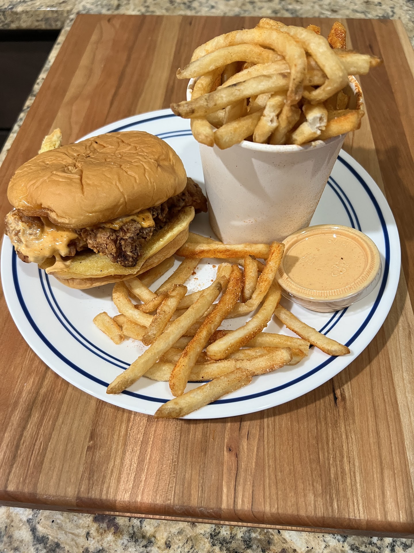 Read moreThe chicken sandwich is worth getting. The wings are not. Too small. The sandwich is spicy! I have a condition with my tongue where I’ve become sensitive to spicy food and I miss it so this was spicy for me! I asked if spicy meant spicy or if it was in the sauce and the cashier said no it’s not spicy so I wasted my money. It’s spicy. Very. Couldn’t eat it. My husband said “it’s got good heat”. the fries are decent. Service was just ok. The sandwich was good but the cashier didn’t know the product.