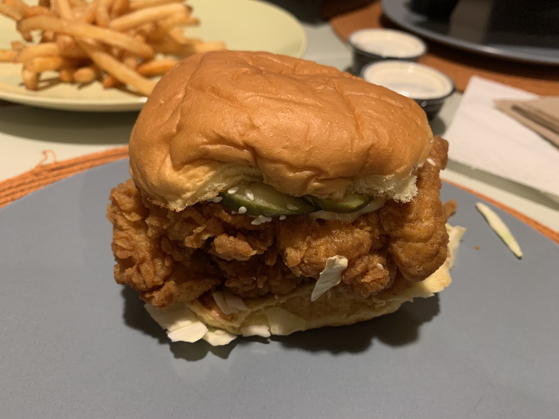 This place was a revelation!!! The sandwiches were really tasty - we got the angry bird and the Katsu one and they were both incredible. The chicken was still crispy, and they gave us the sauces on the side so that it would stay crispy (we had our meal delivered). My boyfriends favorite part of the meal was his sandwich (the angry bird). The Buffalo sauce was really nice and vinegar-y and you could still taste the flavor of the sauce through the spice because it wasn’t very spicy at all. I also really liked the katsu sandwich, but the shining star of the meal for me was the sauce. That sauce was tangy, sweet, and hit DIFFERENT. I also liked the Japanese pickles on the sandwich - they reminded me of the cucumber dish that is so popular at Din Tai Fung. We also got fries, which I think were a victim of delivery. I think if they were super fresh out of the fryer, they would’ve been fantastic. The seasoning was great - we were trying to guess what the seasoning was but I have no idea (seasoned salt? Paprika? I don’t know). We got the sweet Thai chili wings as well, which were tasty but I think did not live up to their full potential. The sauce on the wings was so great, but it didn’t feel like the flavor went all the way to the bone. All in all, this place was really amazing and I’m excited to try the rest...