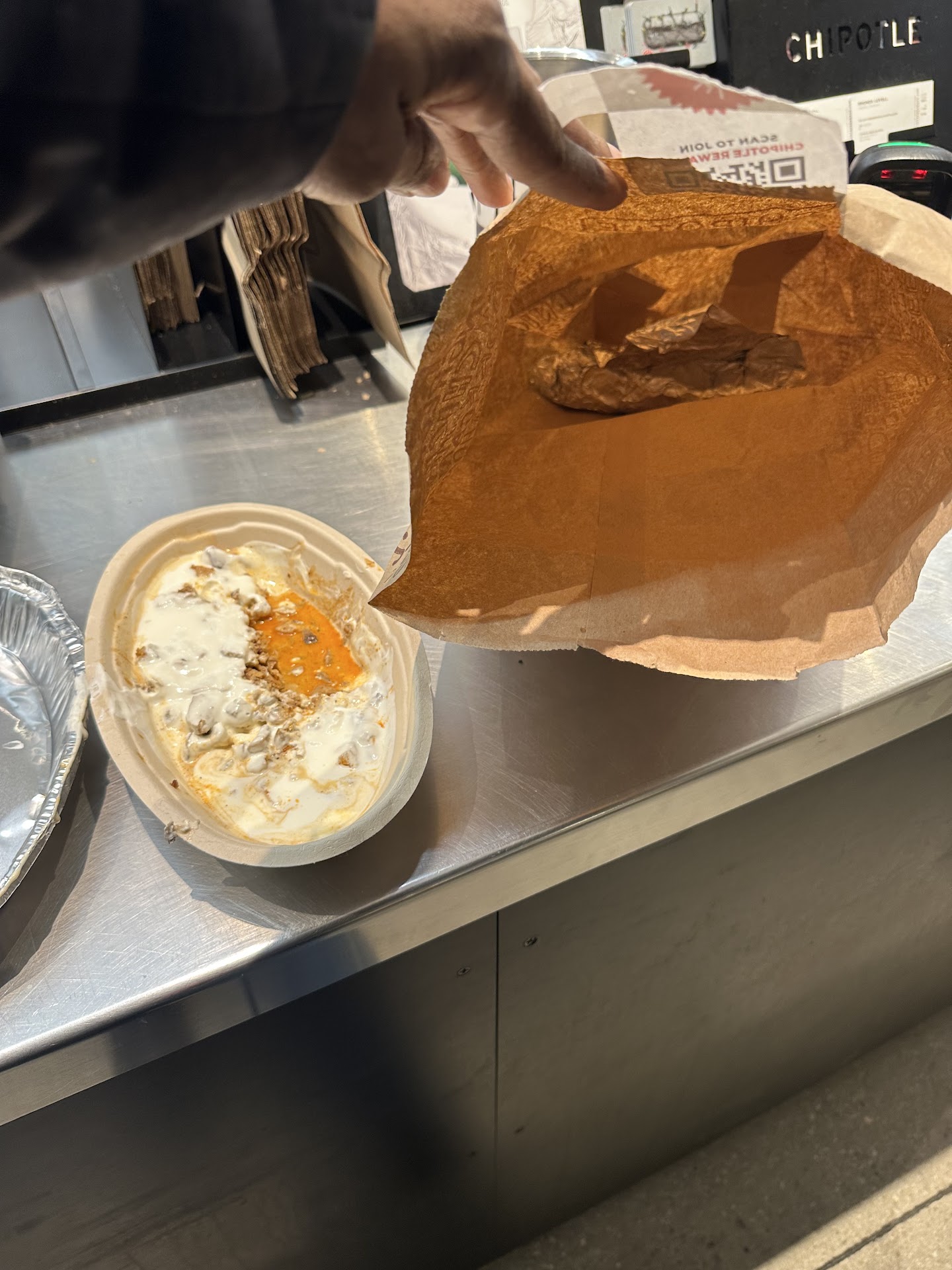 Read moreI was visiting with my son over the weekend of Easter. The Monday after, we go out to get something to eat from this location. The person (male gender or whatever) no judgement... handled my order. I don't know what this location's policy is but, scraping the bottom of a tray holding the food that is on a warmer you order cannot be alright. I couldn't help the reaction of my face. I mean, he scraped so hard, I knew the spicier chicken was dry and/or he scraped the aluminum as well... Now, I get home to eat and realize that he also did not give me the brown rice I asked for. The sour cream I asked for was also runny from the gate at the restaurant. I didn't make a fuss, I didn't return it. But I will NEVER eat anything from this location EVER AGAIN! Then to add Fuel to the Fire... This place was nasty looking. Everything tore up from the floor up! I was afraid to make use of the restroom for fear of what I might have to run away screaming... I've never seen a Chipotle site look so nasty. The only thing I noticed was cleaner than everything else was the white tiled wall up above the grill hood and over, behind the serving counter. Unbelievable! The service was just awful! The best thing to come of it all was a young lady that went out of her way to refill an empty tank of a drink that I wanted. The man that prepared my food was annoyed with me as well as short. Then without notice, went to the back of the store to re-up but did so in a tempered manner. And a side note, your employee or employees need to understand and pay close attention to their customers requests. I had surgery some time ago that does not allow me to eat white rice, ergo the request for the brown rice... Good luck with this one. I ABSOLUTELY DO NOT RECOMMEND EATING FROM THIS LOCATION!!!!!!!!!!!!!!!!! And I wouldn't suggest any choice of food, @least at this location. Sincerely, A Very...