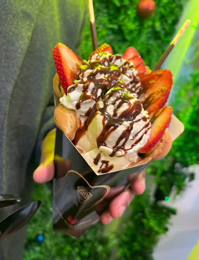 Read moreDiscovered this place on IG and was determined to check it out. The kids and I agreed this would be one of our Hanukkah experiences. It did NOT disappoint! The girl who waited on us was super sweet and friendly and did a great job of balancing our order while finishing up another order. The waffles were AMAZING!! I got crÚme brûlée (the one with the strawberries on it), my son created his own (chocolate) and my daughter got the New Beginnings and made one minor tweak to it. Reasonable prices for a unique desert experience. My only critique is the place is SUPER tiny and there is no place to sit inside to enjoy your treat and the was only one bench which was between this place and the place on the corner but it only fits a couple people and it was taken. Would love...