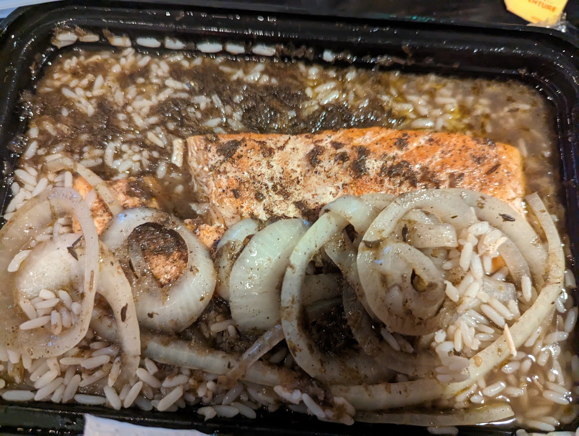 This time: I ordered the jerked salmon, I asked if I could substitute rice for grits and was told sure, no problem. A young man who appeared to be a cook overheard my request and grumbled something about rice, and the lady taking my order just waved him off. Red flag #1. Waited almost 30 minutes only to be handed a container full of slop. See attached photo. It was probably the most unappetizing looking meal I've ever gotten at a restaurant. The rice and fish were DROWNING in so much liquid that it overflowed into the bottom of the bag. All of it was a brownish gray color. I took a teeny bite of the salmon and it had hardly any flavor, as if they couldn't be bothered to actually season the food.
