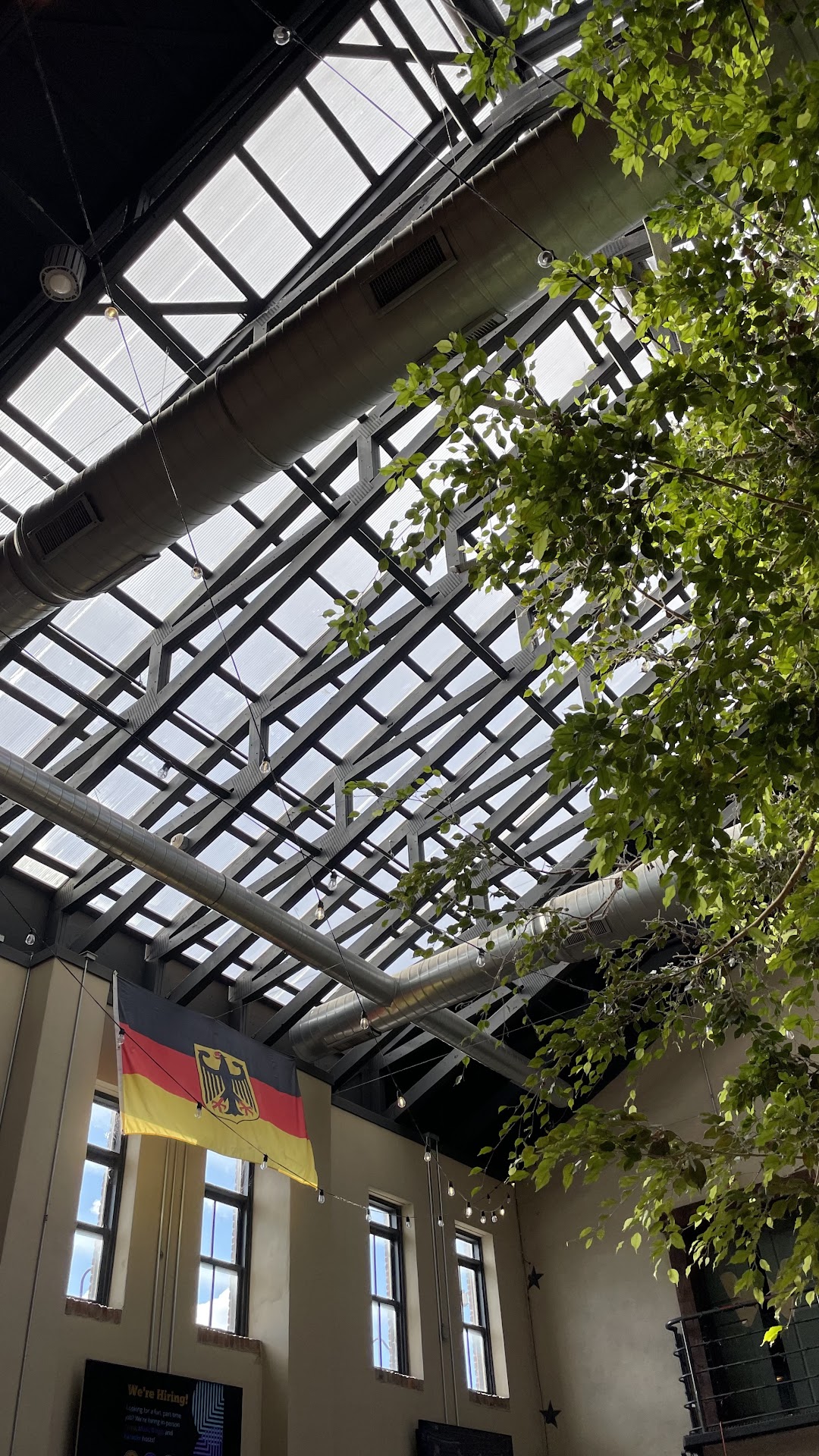 The interior had more of a fest tent feeling than a Gasthaus. There’s a ping pong table that gets played on and a bunch of TVs showing the game.