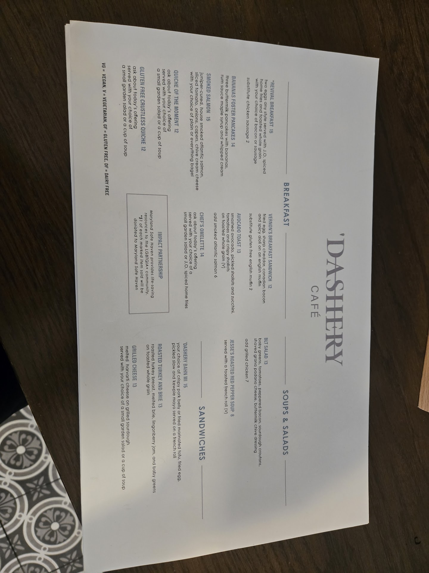 Ā Ā Ā Read moreWe were visiting Baltimore and started our morning with a walk from our hotel in Fells Point to the Mount Vernon neighborhood, where we stopped at Dashery Cafe for breakfast. It wasn't quite what I expected - I had envisioned more of a formal, sit down restaurant, but it turned out to be a casual, order at the counter place. Once your name is called, you pick up your own food.