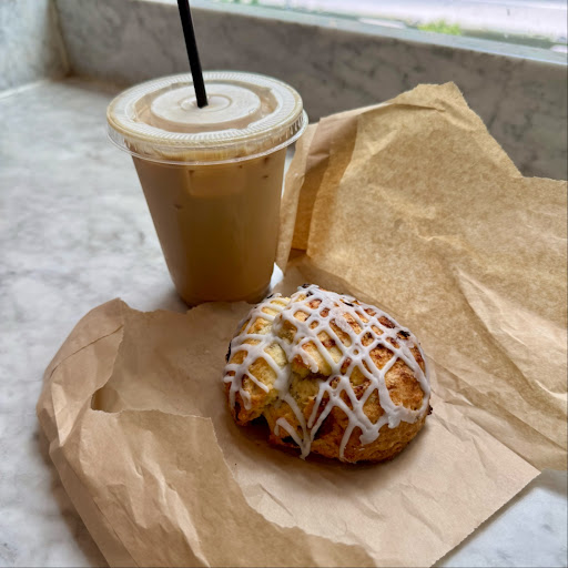 I stopped in for a coffee break and tried one of their house-made syrup lattes. I went with the Miso Caramel latte ($4.50), subbed with oat milk for an extra $0.75. It didn’t have a strong miso flavor, but it was still smooth and enjoyable. I also grabbed a Lavender Goat Cheese Scone for $4, which was a highlight. You could see the lavender tea leaves baked in and the goat cheese crumble gave it a savory edge that balanced the floral notes beautifully—highly recommend trying it if you like unique pastries.