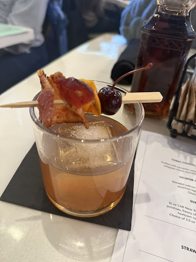 Now, I got lucky with bar seating again (favor ain’t fair), and per usual, I ordered the premium sampler. But that prosecco? Yeah…somebody grabbed that off the “manager’s special” rack. It was giving dry and confused. Thankfully, the old fashioned came in like a hero and saved the moment—smooth, well-crafted, and grown.