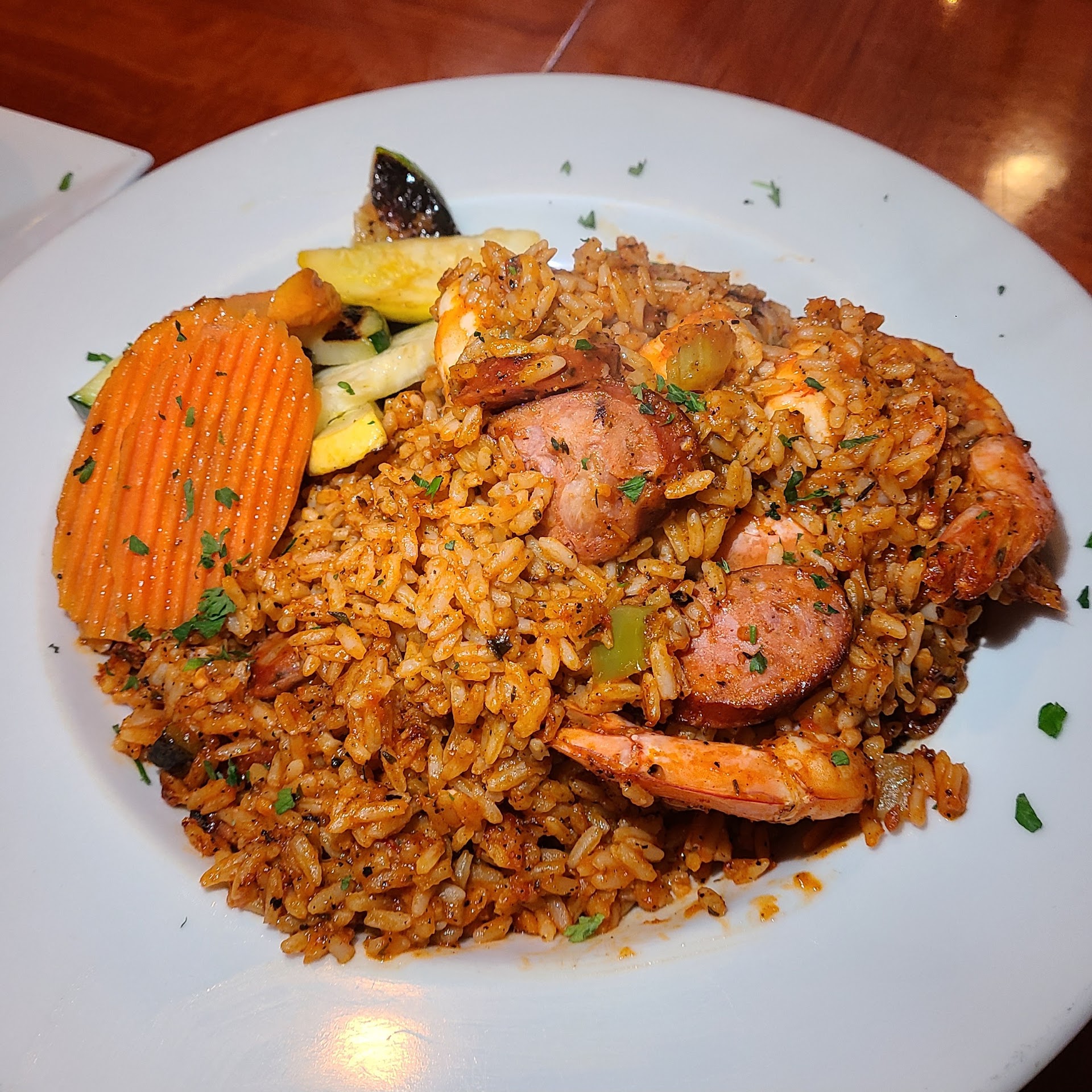 Even though I have had jambalaya elsewhere, including in New Orleans, so far the jambalaya here is the best I have ever had. It was flavorful, abundant in quantity, well-seasoned, and had a good balance of meat, rice, and vegetables on the side. The baby back ribs were sure slow roasted because the meat was falling off the bones very easily, with a sufficient amount of ribs in some delicious sauce. There was also a good amount of roasted zucchini, squash, and carrots, so I was thoroughly satisfied. They have the ribs available in the mango chipotle sauce as well.