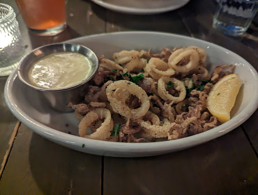 Read moreThis was such a disappointment. We'd been looking at it awhile longingly but it always looked packed. We kind of assumed it would be really good from all the traffic it gets but everything was tiny and overpriced. The wait staff were friendly but busy (not mad about it but it wasn't as warm and welcoming as some of the other places around here). We got the wood fired octupus and we're disapointed that for $14 you only got one tentacle. The chickpeas and that one tentacle however were delicious. The pizza was just sad. We got the miles Davis which I was hoping would be covered in mushrooms however there were about as many as you would get from digorno and about as much flavor. The crust was similar to naan in texture which I liked and did eat with butter (usually leave the crust) but it was a soggy mess in the middle and kinda burnt on the bottom. There was a hint of ricotta and just a mess of sauce. I've never encountered such a sad Pizza and it certainly wasn't worth $17. My husband and I walked out of there still hungry after spending $50 ( he got a beer too). I guess it's more of a hipster thing. Don't go if...