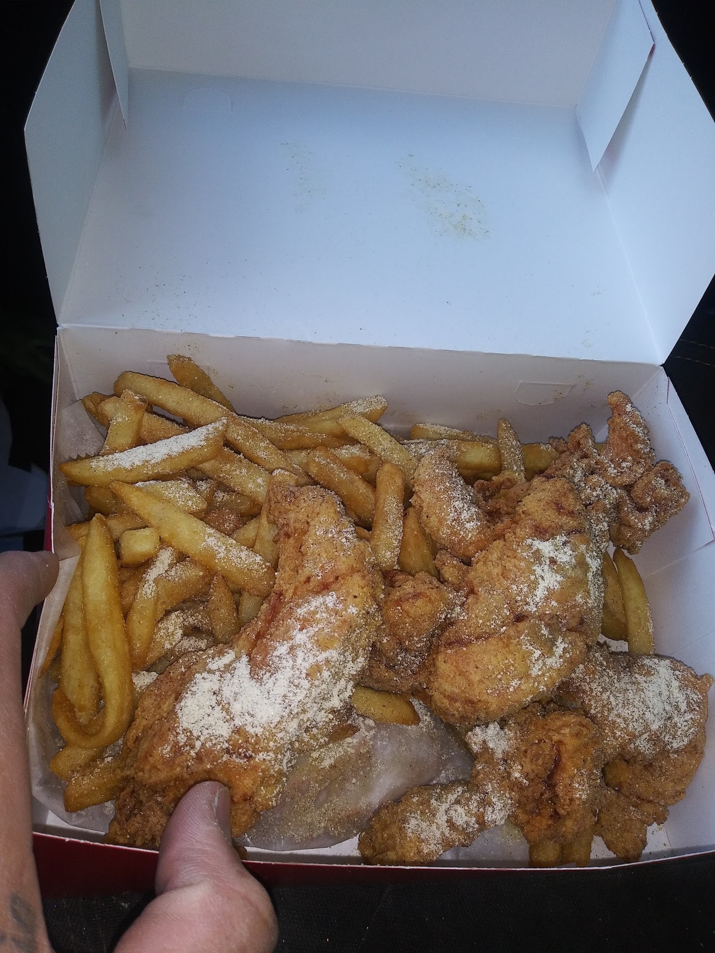 Read moreReally wanted this place to live up to all the hype! While the chicken dinner and the fish dinner we received was edible, it DEFINITELY did not live up to what all people said it would be. We showed up to this location one evening about 9:15 p.m. did not realize on a Friday night they close this early but was happy that we made it in in time. After we walked in and where looked at as if what did we want, one of the workers lock the door from the outside while myself and a few others who were there before me had ordered. We order and wait patiently we are the last couple inside in the last order to be made that evening. Once we got home realized we did not receive or coleslaw that clearly came with our meals and the fries were sopping with grease and also the fish was overcooked just hard crispy no flake we ordered Catfish by the way! I have always heard that hip hop chickens had good food but this was definitely not a good experience. Maybe we'll try it again, maybe it'll be...