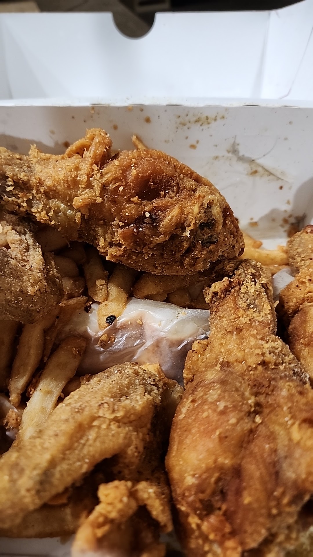 Read moreStopped by to pick up lunch for my family around 12:15 pm today only to be disappointed when I got home. I ordered a chicken combo (3 wings & 3 legs) with fries, (5 wings & 5 legs) with fries, and okra and macaroni & cheese ala carte. The chicken is extremely dry and tastes old because the skin was hard and tough to chew. And other pieces of the chicken's skin were soft and bald in various places. Which would indicate that the chicken was battered improperly. However, I did call the store and spoke to Mohammed. He asked me to bring it back and he'd replace it. This is such an inconvenience because I've made it home and cannot go back there today. As a result, we're still without lunch for today. SMH. From now on, I'll make sure to check my food before leaving the restaurant. I've worked in restaurant and retail management for over 30 years and I would never serve or sell anything that I wouldn't eat. Check and recheck before serving to ensure accuracy...