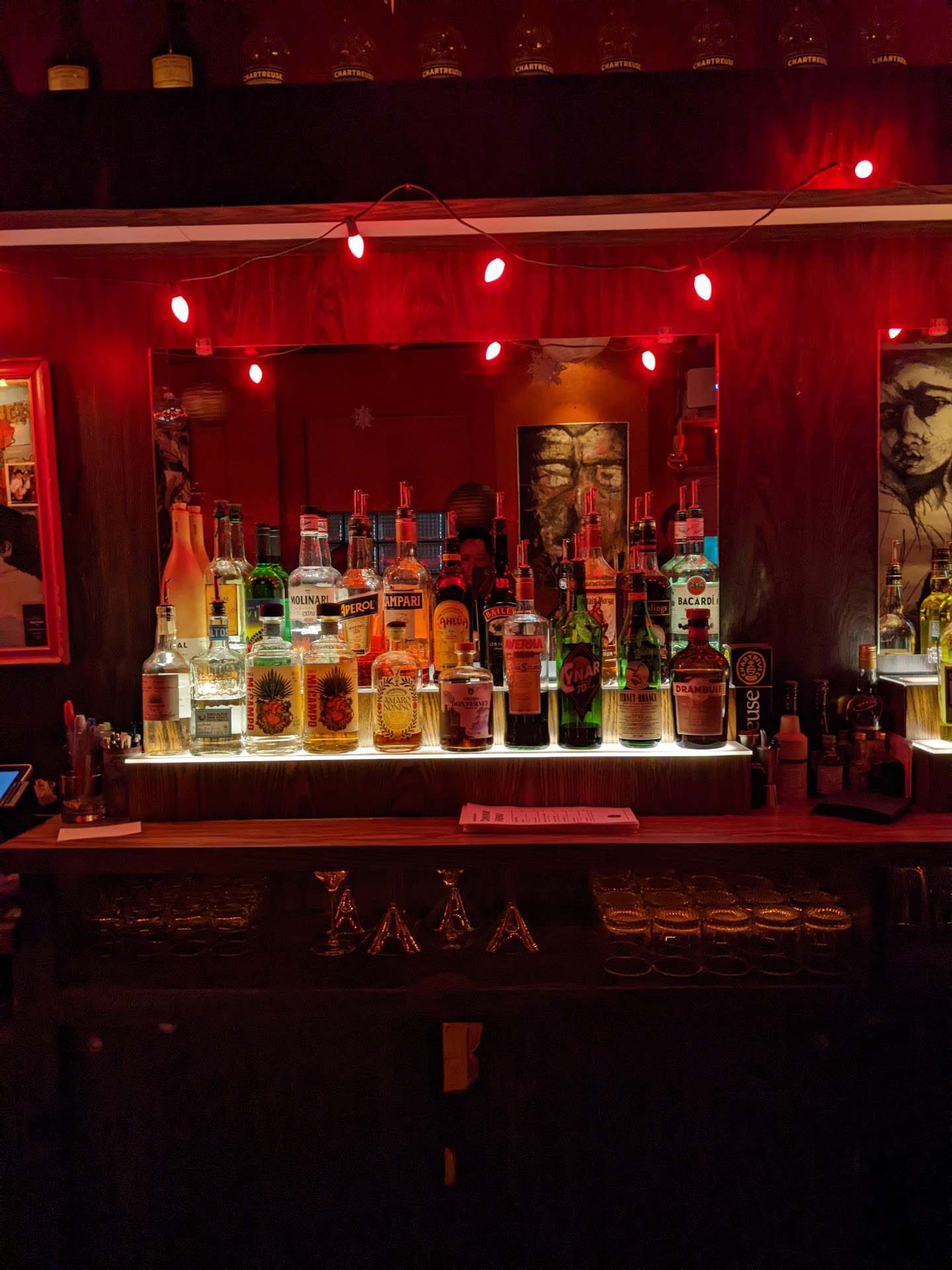 Unfussy haunt serving Chartreuse, rye & pickle juice chasers in art-filled digs with a turntable.