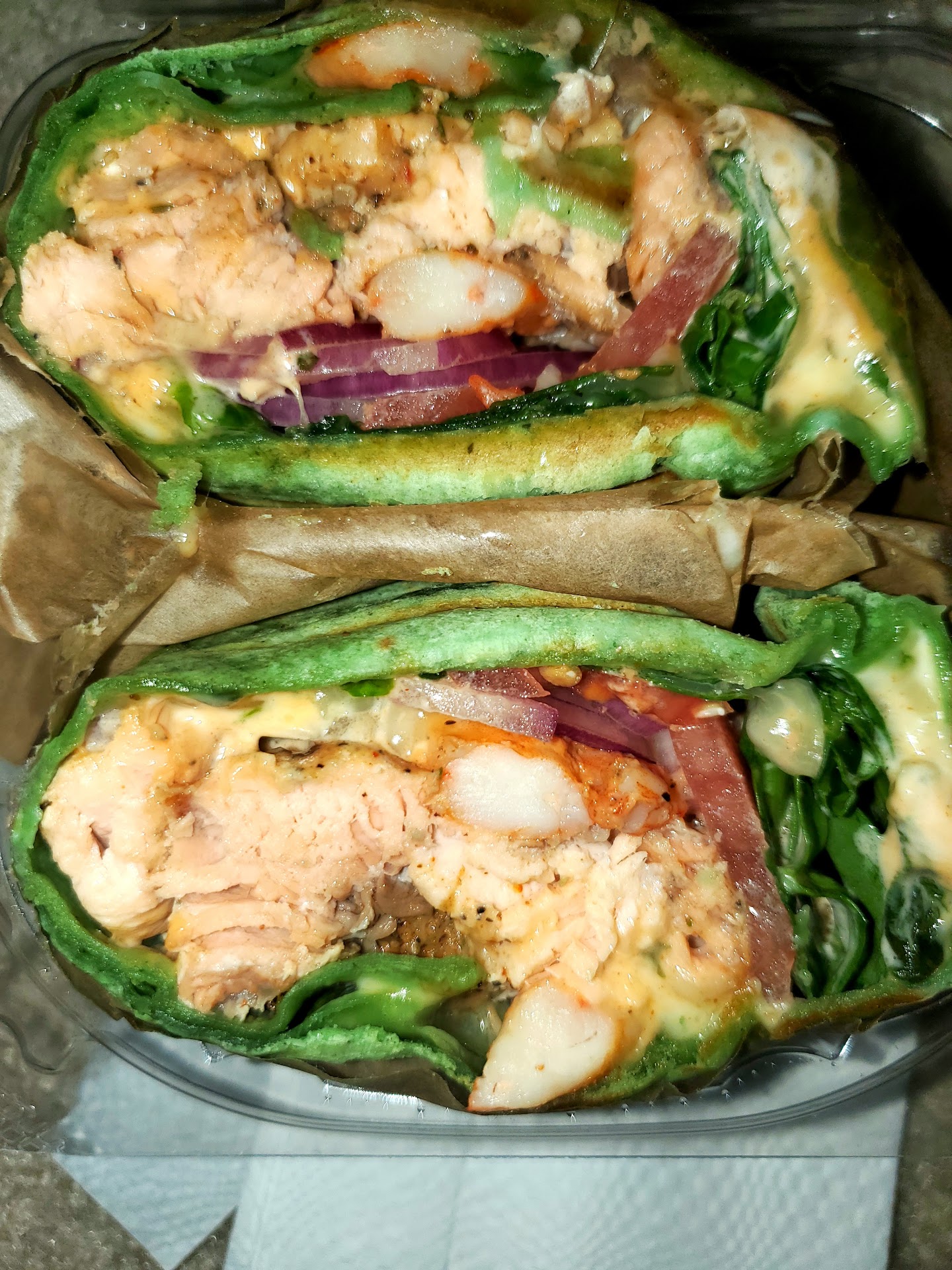 Read moreGod is good. God is kind. God bless the hands that created this delicious find. Lawdddd have mercy! I had the grilled shrimp and salmon on a spinach wrap and mayne, did it have me doing a lil dance as I ate. You know the dance where it taste so good you can't help but move your body to the "it taste so good" beat.
