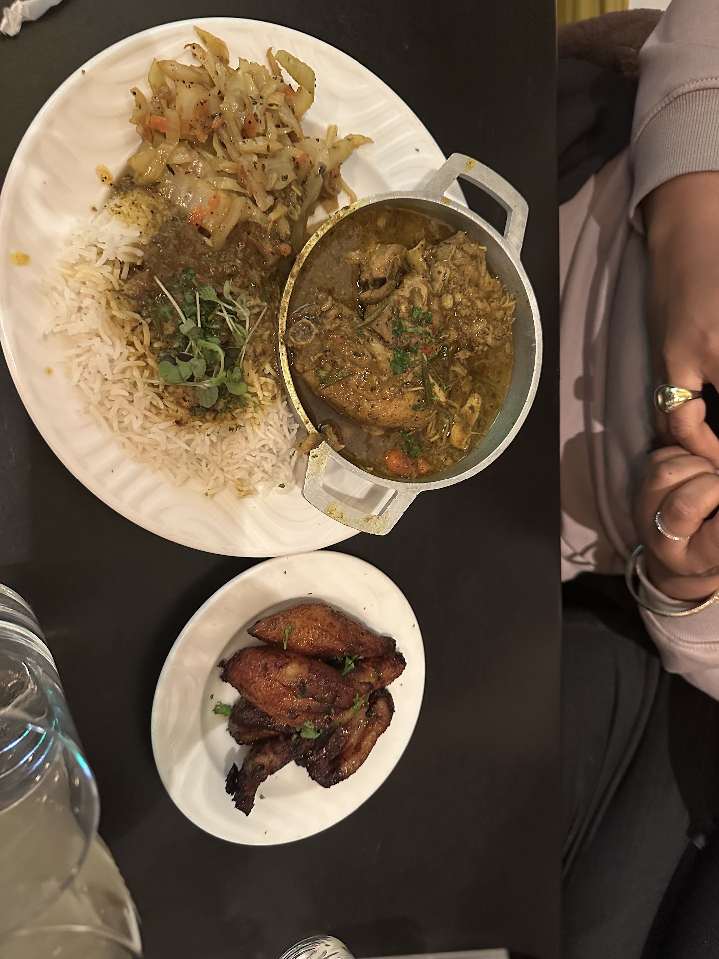 My wife and I were really excited to try this place and when I say excited I mean excited! But we left disappointed đđ unfortunately. So first I really dislike where its located, second I really dislike the building its located in...moving on, we ordered the jerk oxtail tacos for a appetizer with coco bread and the tacos were just okay, the oxtail flavor was good but the taco as a whole was underwhelming....so next would be the main entre, I knew exactly what I wanted and couldn't wait to get it, and if you guessed the curry goat then you guessed right! So to my surprise they were out of đ đĄ which was really disappointing because, we got there maybe at 530pm, they opened at 5pm so there is no way you should be out of goat in my opinion. Saturday night 530pm you should have goat!!!!! I was really disappointed by that, ok so my wife ordered the rasta pasta with oxtail and i ordered the jerk chicken with rice and peas and i also got the ja mac and cheese. The food wasn't nasty, let me start off by saying that, however it didn't meet our expectations either....the jerk chicken wasn't already chopped, it should have been chopped up. The rice and peas were again just okay, i love me some rice and peas but these were just not what I was expecting, they tried to elevate the rice and peas, I get it but no don't elevate my rice and peas...I don't want fancy rice and peas I want good ol authentic jamaican rice and peas but again it wasn't nasty, none of the food was....the ja mac and cheese was also just okay......if I'm paying 135 dollars for food, I want to leave there feeling like I got my money's worth not like I just gave away money and that's how I felt leaving this place and I desperately wanted to feel like this place was amazing but its not and sadly to say I will not be going back at least not to this location, maybe the one in college park is better or the next time I go home to Detroit, I'll try the...