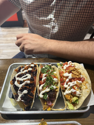 We tried the Kabuli taco, Sha Bang shrimp taco, Jerk Boyz taco, Kalifornia taco, Buffalo chicken taco, and the shrimp tacoâplus the loaded nachos for appetizer and the Oreo tres leches for dessert. My favorite? The Sha Bang shrimp taco đ¤¤âperfectly seasoned, fresh, and absolutely crave-worthy. The Kabuli taco was unlike anything Iâve ever had before, so unique and flavorful that it left me wanting more.