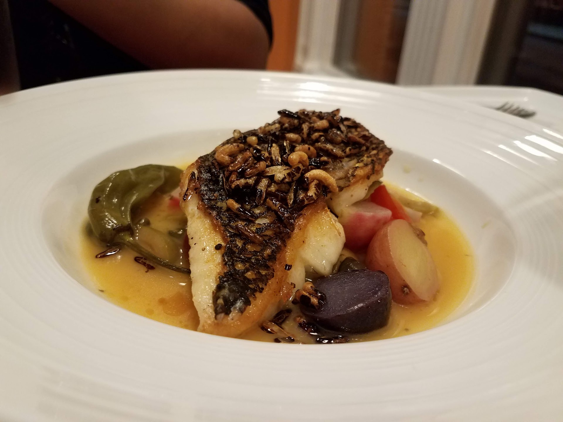 We shared the barbacoa and the sea bass a la veracruz. The barbacoa came with fresh guacamole and a side of pickled nopales and corn tortillas. The sea bass was served over a delightful and light, buttery wine sauce with small potatoes, radishes, capers, and cherry tomatoes. Again, we were blown away by the taste of each entree. I was given a glass of Chilean malbec which was a good pairing for the meat.