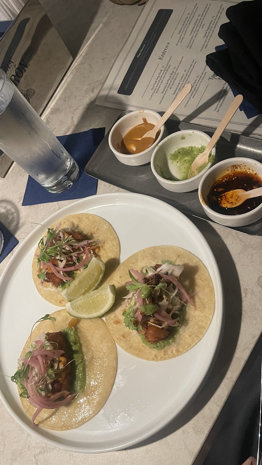I asked for sauce for my own tacos, since the waiter didn’t leave any for my taco implying I had to share for my entree due to my friend having barely any sauce left over from her tacos. She had an attitude about this. She never even asked if we wanted to refill our drinks, or order more food. She barely spoke to us at all and seemed like it pained her each time she did.