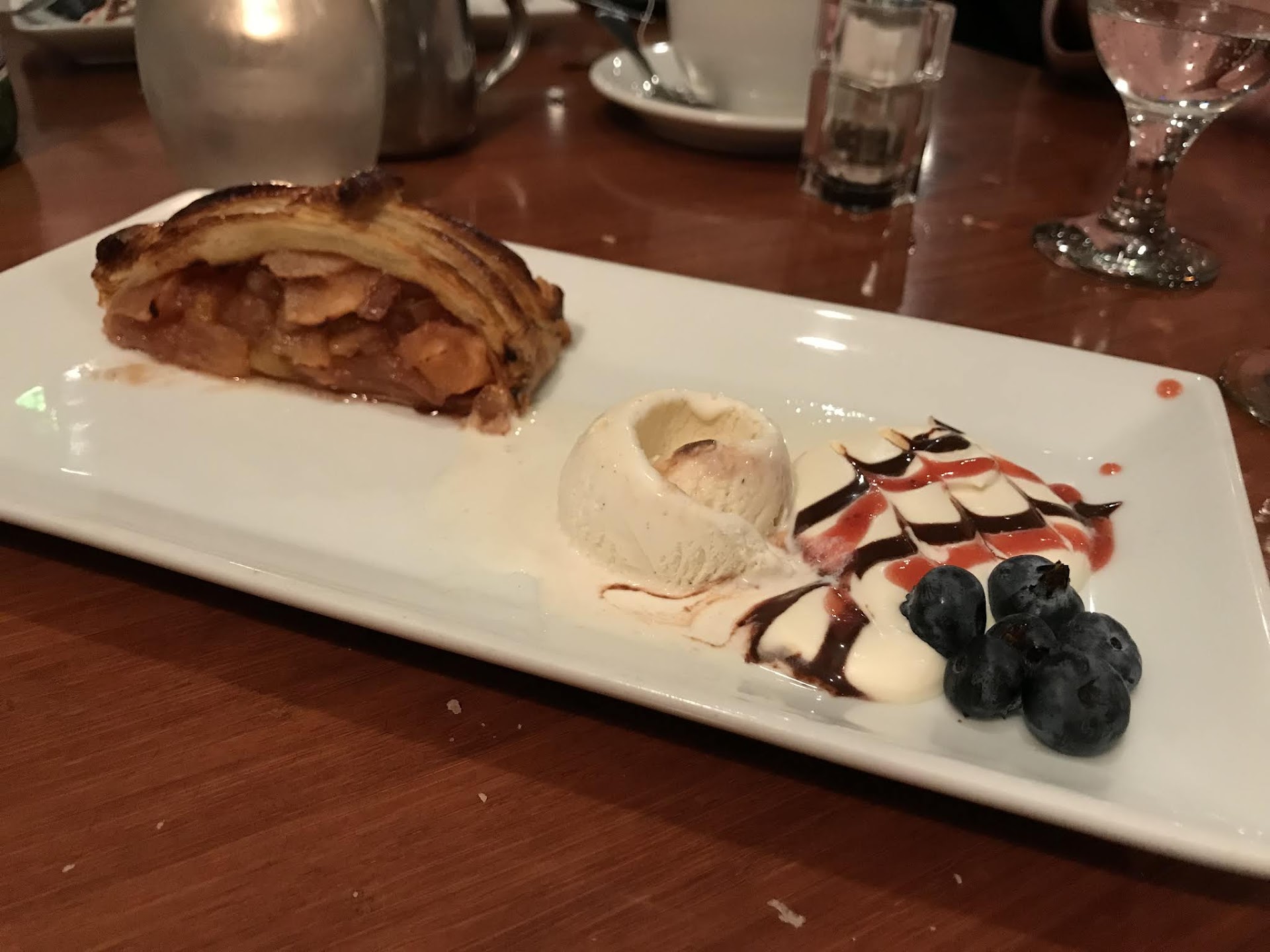 Then I had the short ribs on a bed of risotto. Absolutely fabulous. The meat just falls off the bone. And for dessert I had the tartuffo. I need my food gluten free so I have just the top part of the tartuffo (so no cake). It tastes great. It's gelato with a chocolate sauce.