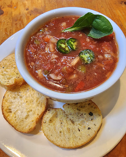 It was a hot day, and I arrived hungry! I started with a cup of the gazpacho. It arrived with a wheel of lime to squeeze on top and some crisp baguette toasts. The gazpacho was so flavorful, cooling, and refreshing. I could feel my vitality being restored as I finished it off.