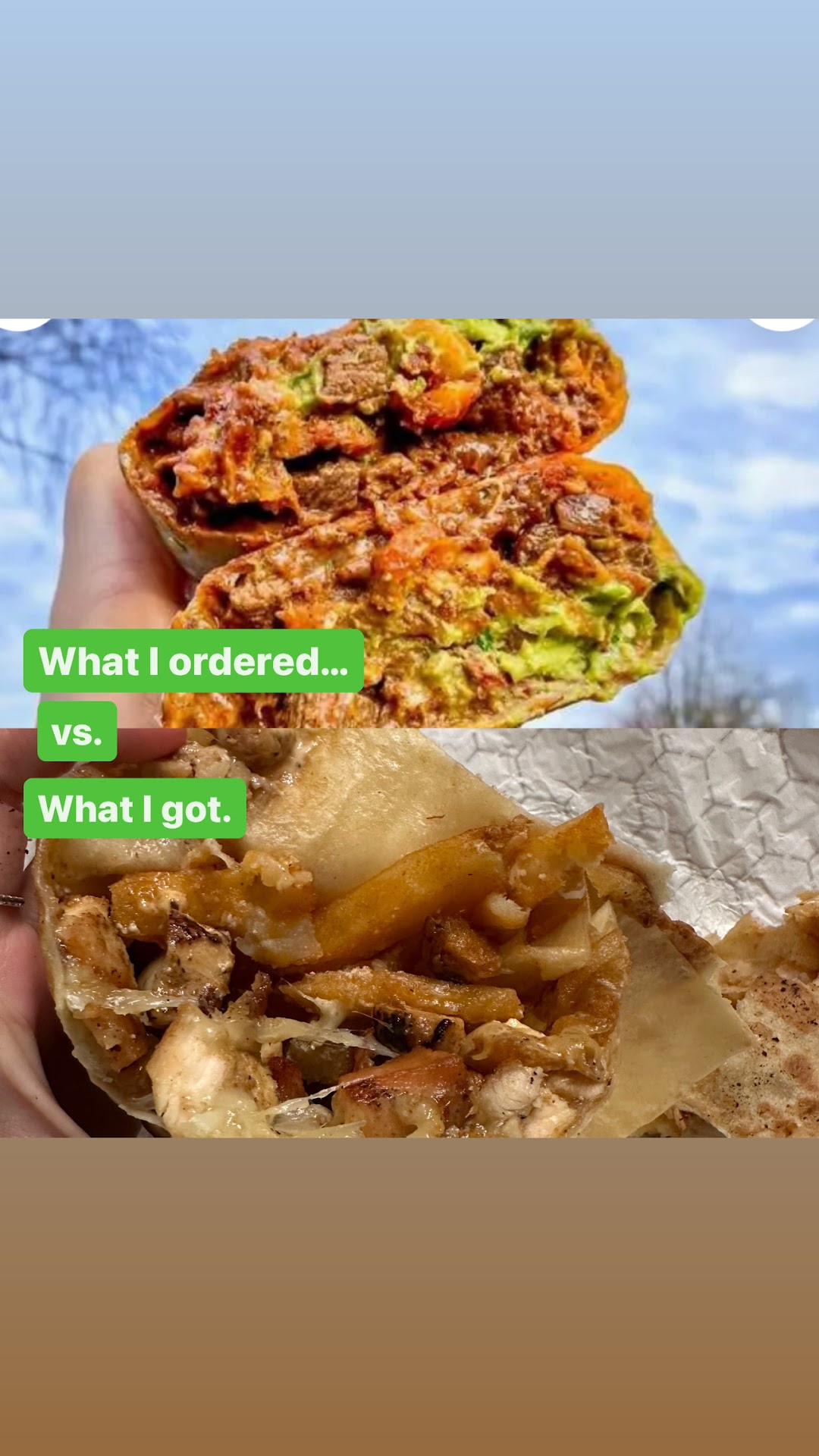 I’ve never left a Google review but this was so disappointing that I had to. My husband and I used to order from here all the time through UberEats because it was always so good. The burrito was well seasoned, extremely juicy, and there was so much stuff inside. Their fried desserts used to be coated with dough and so soft. Then, UberEats got rid of the place so we weren’t able to get it for a few months. We finally saw this place again today and were excited to get it. We ordered 2 burritos, a flamin hot Cheeto crunch wrap, and fried Oreos. When I tell you it was LITERALLY THE MOST DRY, UNSEASONED FOOD EVER!!! I paid around $15 for the flamin hot crunch wrap supremes and I’d very much rather eat Taco’s Bell’s crunch wrap supreme than have to endure the disgusting disappointment of Man vs. Fries Crunch Wrap. What you get looks NOTHING LIKE THE PHOTOS. I was extremely disappointed because it was never bad, let alone this horrendous. Even the fried Oreos were hard and barely coated with any batter. It was so bad and so disappointing we had to order something else to eat. Seriously, if you’re contemplating ordering from here, save your money, get into your car, and order...
