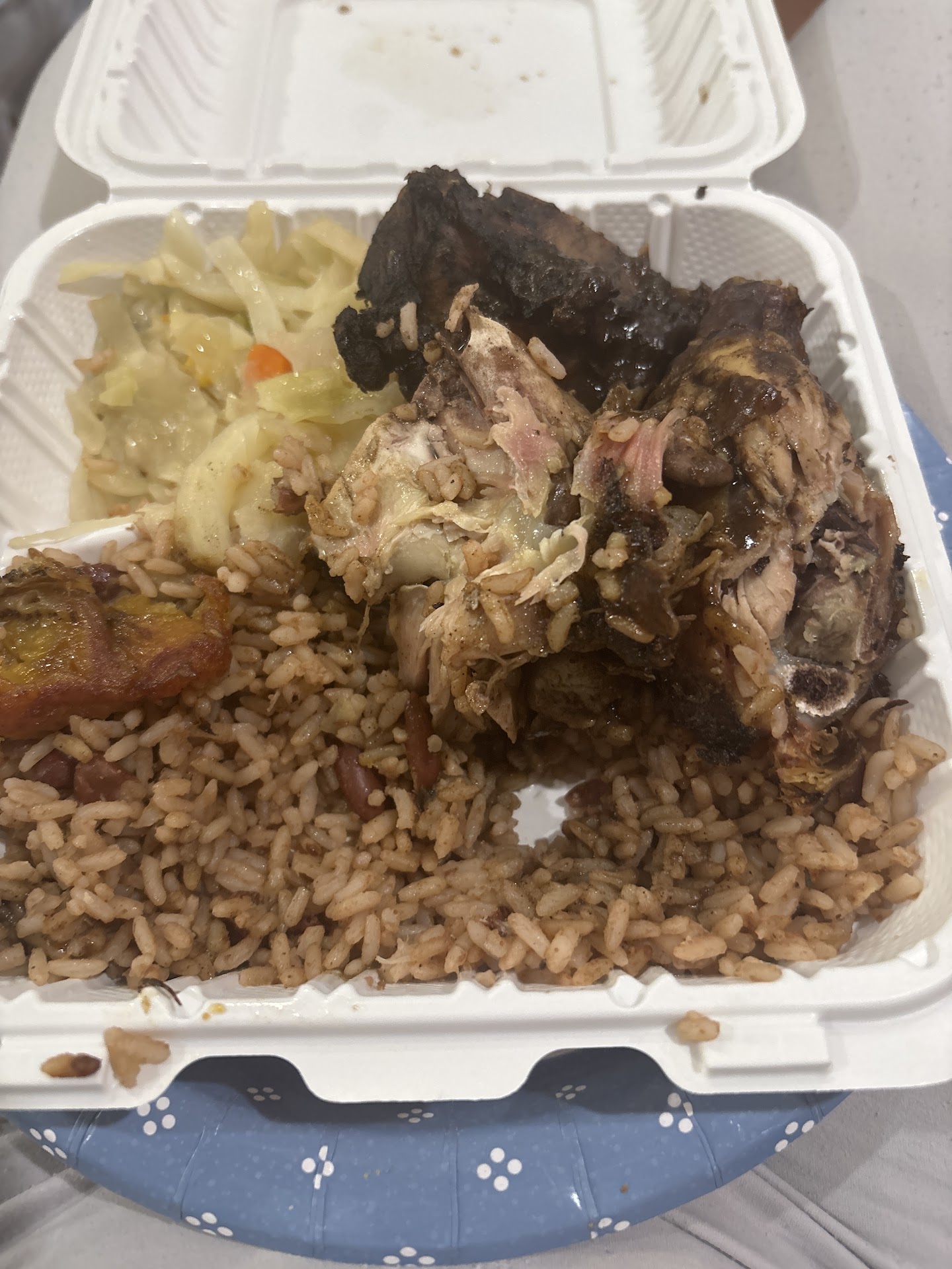 Read moreMy husband and I were in Baltimore and decided to find a Jamaican spot. He is a Jamaican so we eat out frequently at different Jamaican spots. We both decided to get the oxtail dinners since it was a spot with good reviews. I expected to be satisfied since this is usually the most expensive meal on the menu at most Jamaican spots. The oxtail meal was the worse I’ve ever had. It resonated like brown stew in color, the meat was unseasoned and had a weird taste, the cabbage was very bland , not even an ounce of seasoning, the rice and peas were subpar. The only thing edible was the plantains which were so to soft. The jerk wings are ok, but looked to be rewarmed from the prior day. To make matters worse the lady is unwelcoming and unjustifiable rude. Meal was over 76$ because of two orders and drinks. My husband actually threw his meal out. Not sure where all the reviews came from, but maybe that’s not their strong...