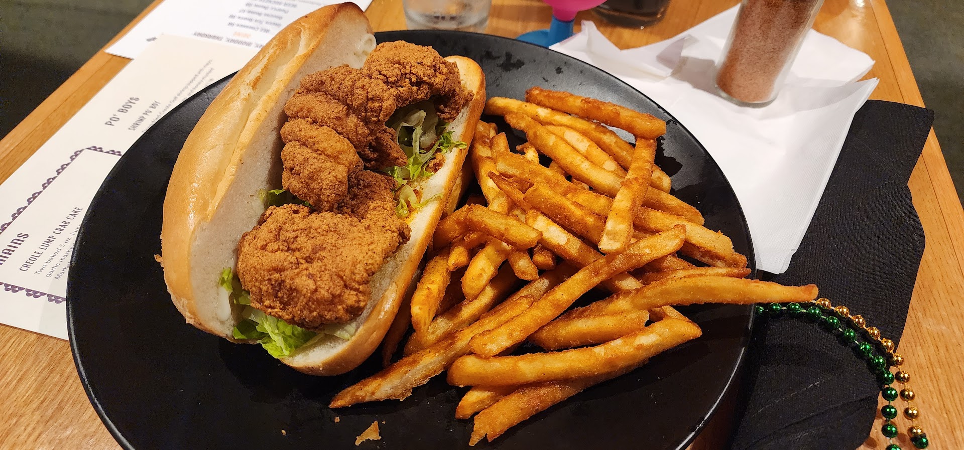 For main courses I ordered the Catfish po'boy minus the tomato. This came with fries that seemed to be season to perfection. But the fish left alot to be desired. It was simply fried fish the breading wasn't season but the fish was definitely fried and crispy. The star for me was the fries.