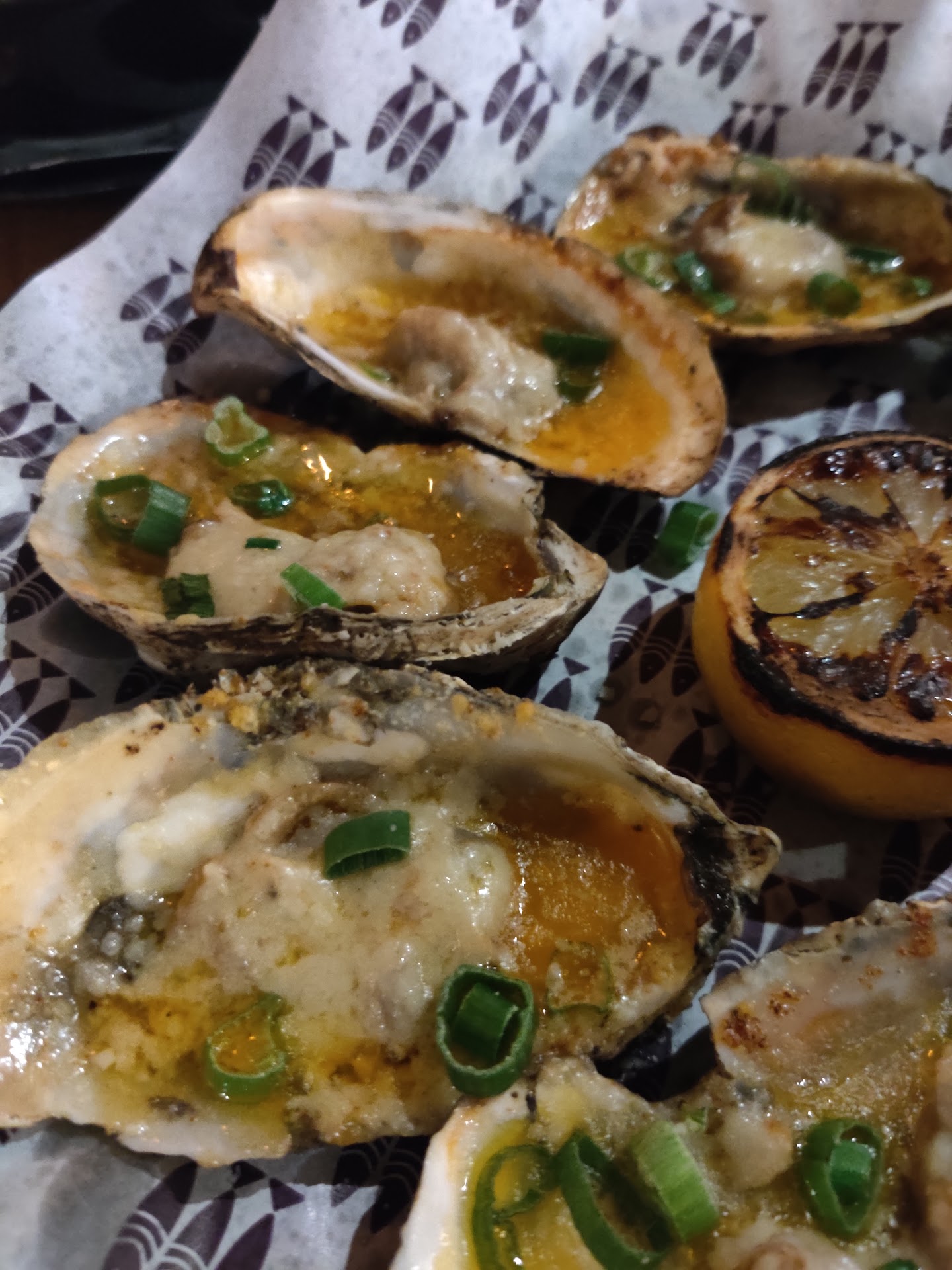 Service: 5/5. Our server was fantastic from start to finish. Normally a bartender, she was working the floor that night. With it being our first time dining at Nola, she provided us with great food and drink suggestions as well as a few fresh shucked oysters on the house. Food/drinks came out quickly and piping hot. When it was time to grab the check, she was able to split our bill amongst the 2 couples at our table by what we ordered.