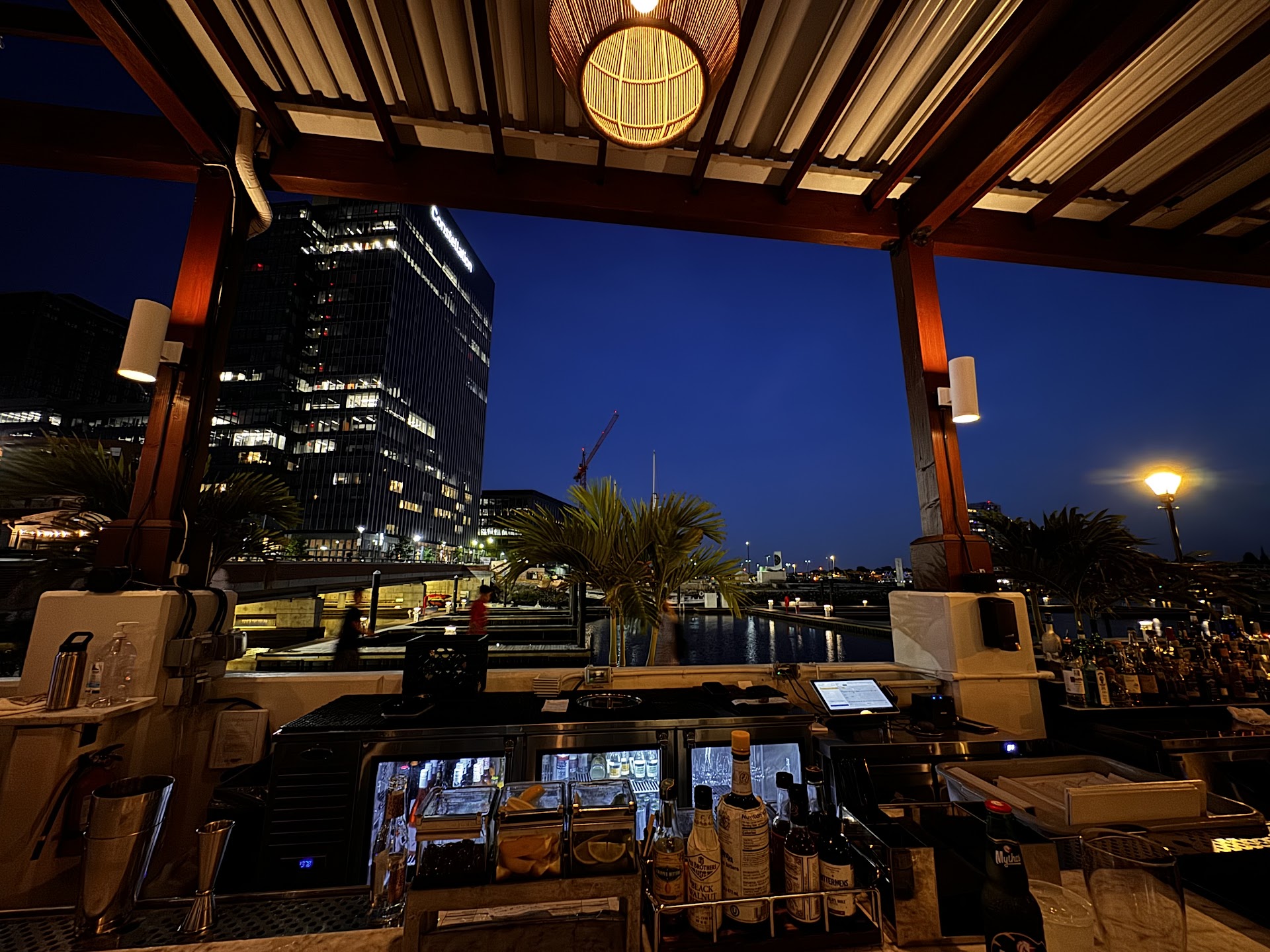 We passed by on our way to dinner and the place gave off a great vibe; so much we went back after dinner. The place has a great atmosphere and a excellent view. It is right on the harbor path. We went on June 18, which was a hot evening but not too humid and the bar was super comfortable. The bartender Ellen was phenomenal. She explained the cocktails and we discussed variations and other great drinks. She ran a tight ship and made sure all were accommodated (I thought she was the manager, not just the bartender). We ended up discussing all sorts of subjects and she was very interesting and insightful. Rina was new on the job but made a great Old Fashioned. She was great to talk to, but we feel her psychology schooling had a little something to do with that. Another client left her a big tip after she gave him some relationship advice which he solicited. We can not wait to return for another evening of cocktails and lively discussion. We will be sure try the...