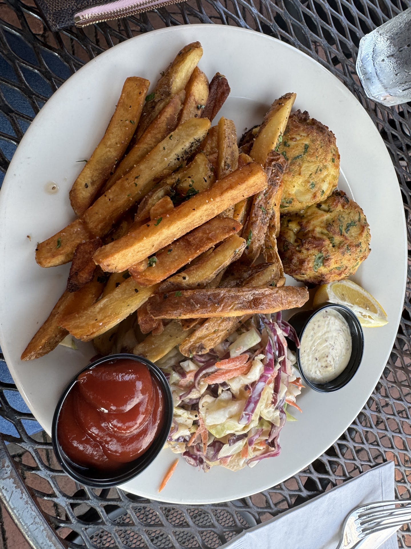 During my recent visit to The Penny Black, I had the pleasure of trying their crab cakes, fresh-cut fries, and coleslaw. The crab cakes were a standout, showcasing fresh ingredients and a perfectly crisp exterior. They were flavorful, moist, and seasoned just right, making them the highlight of my meal.