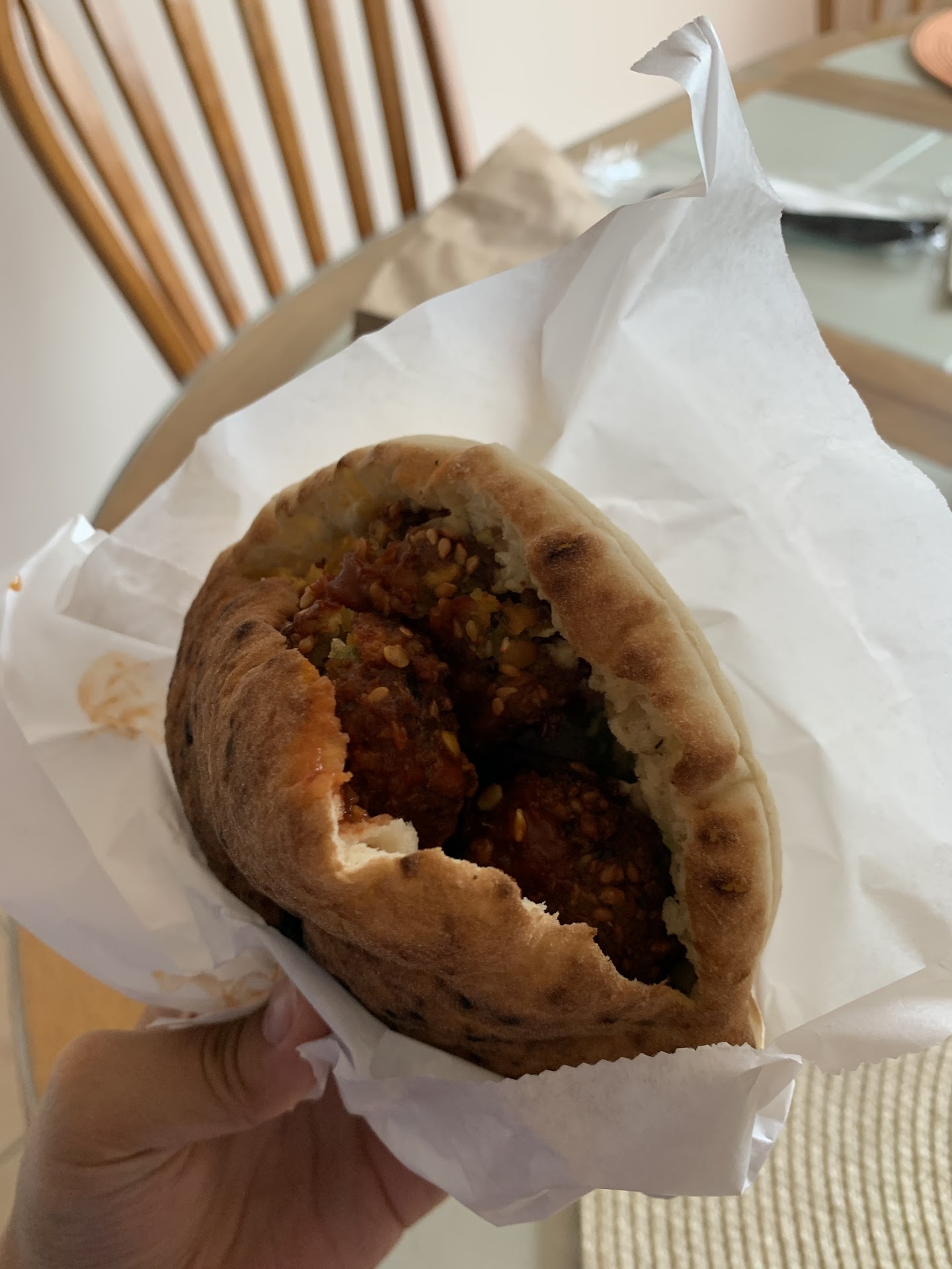Ā Ā Ā Read moreThese sandwiches were so delicious!! We got a spicy falafel and a mixed shawarma pita and both were really tasty. The spicy sauce on the falafel was so flavorful and the portion size was amazing. The mixed shawarma pita was stuffed full to the brim of chicken, lamb, and beef and it was incredible. The ratio of meat to toppings in the pita was like 4:1 and thatās how it should be!! The toppings that were in the pita were also very tasty - fresh, seasoned, and added the nice vinegar and crunch that was needed in the pitas. I wish that the falafel was maybe a touch crunchier, but that definitely could be a result of transportation/delivery. The pita was also very good - soft, but it didnāt fall apart under all of the fillings inside. The two little containers had tahini and (we think???) some sort of tzatziki sauce. The tahini was very standard - creamy, sesame-y, delicious. The tzatziki (again, no idea if it was actually tzatziki it just tasted of dill and herbs and so that was our first thought) was also flavorful, if a little thin. This was a great experience! Iām excited to try more...