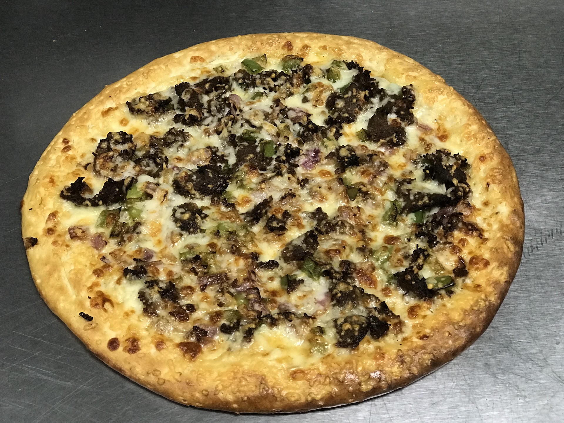 This is an odd little pizza place that I like pretty well. I've had several of their pizzas, with all 3 crust types (thin, regular, stuffed crust). I'm certain they use some kind of pre-made crust for the thin and regular, but that's weirdly not a dealbreaker.