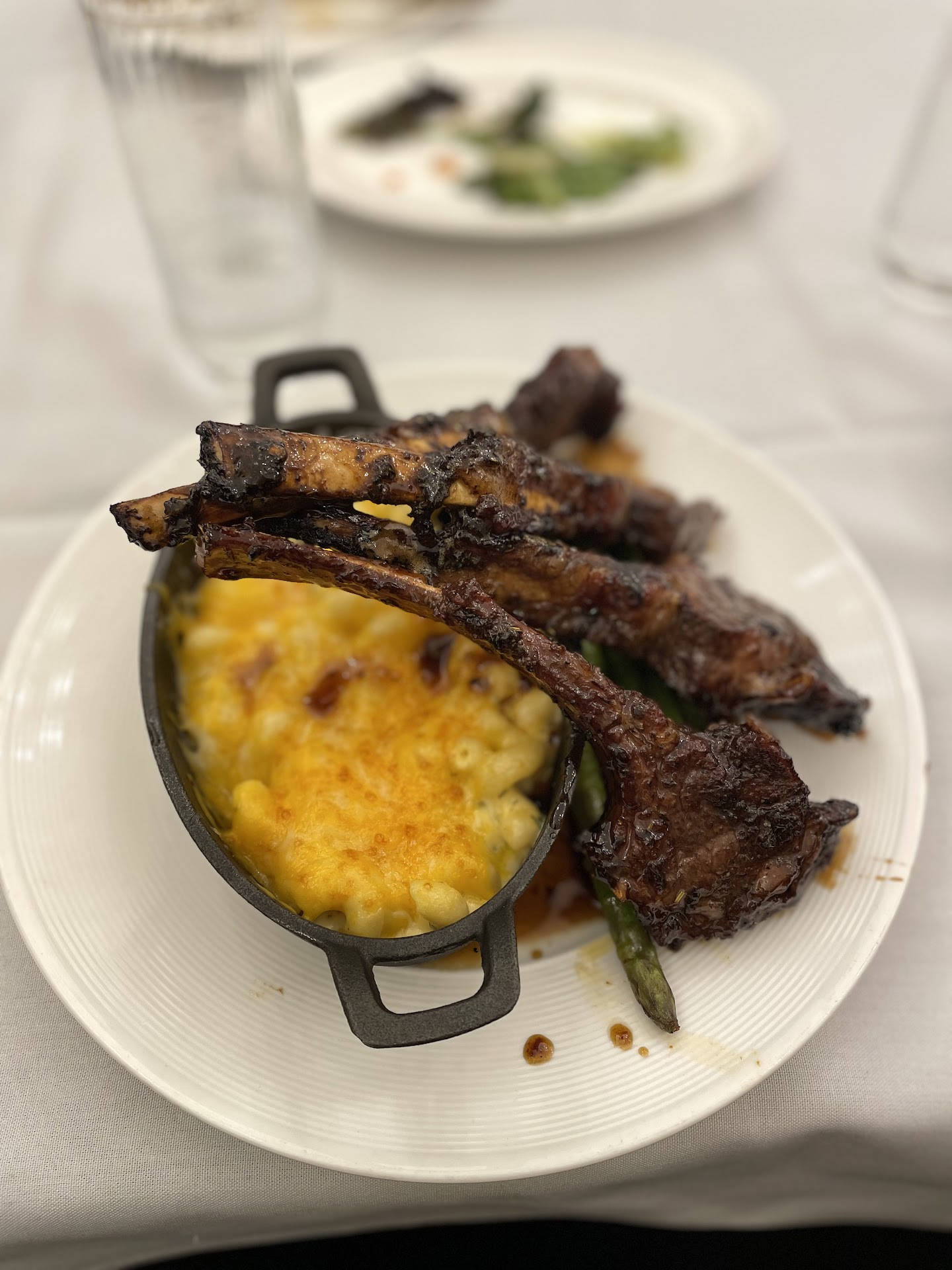 Honey Jerk Lamb these were a winner. đYâall gotta try them. They were cooked to perfection, still had the gamey taste. However it wasnât overbearing but present (I love that taste). The sauce was SUPERB! Two sides come with this meal so I got asparagus and Mac n cheese. The Mac is CRAZY!!