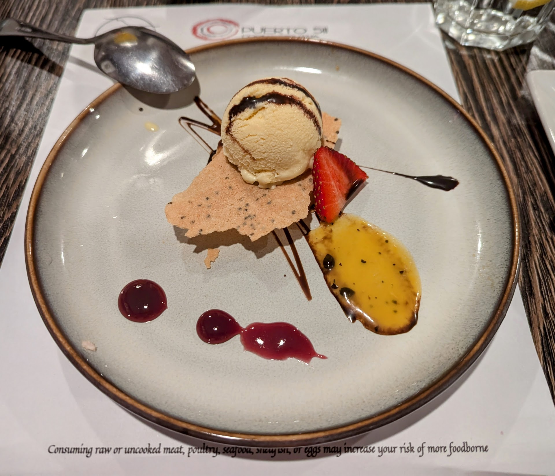 There was lollipop lamb chop and a shrimp dish. The highlight of the the passion fruit ice cream coffee flan dessert was definitely the passion fruit ice cream. It was very refreshing.