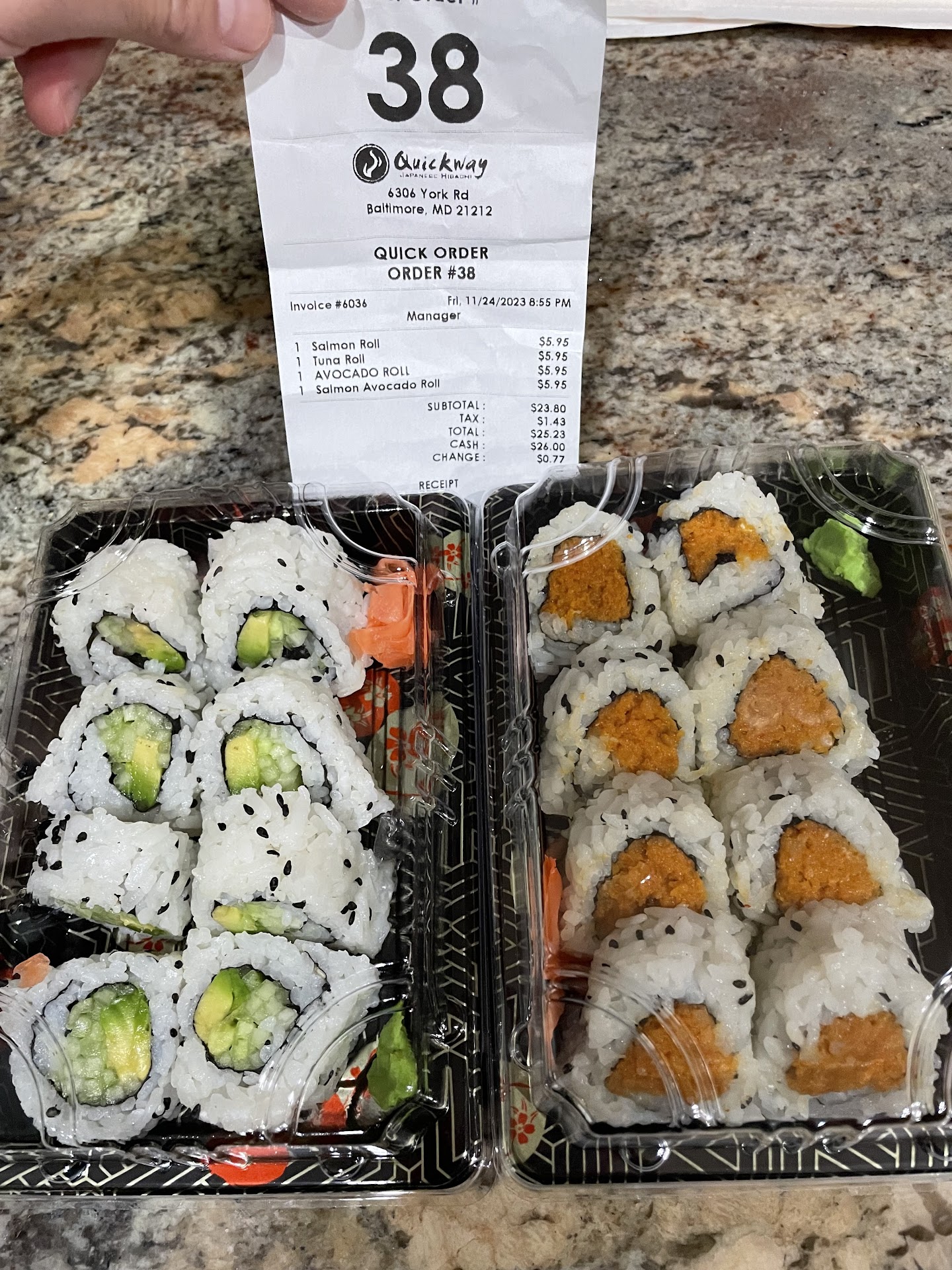 Read moreI ordered my meal through a delivery service. This was my first order from Quickway and I was very satisfied. The food was good and plentiful for a surprisingly good price. I ordered the Chicken and Shrimp Combo with rice & noodles and it was only about $12 and overflowing the container. A Spicy Crab and Shrimp Roll and the Shrimp Tempura were all a good size. The shrimp were good but soggy, probably due to the delivery time, I suspect they would be much better as an eat-in item. The roll was very good as well, but strangely warm. Maybe from sharing a bag with the hot foods. The star was the Chicken and Shrimp Combo with sides of rice and noodles. Deliciously prepared with a tasty sauce. The rice needed a little soy to give more flavor. The noodles were great. A huge meal that would have satisfied on it's own. (I ordered extra stuff because I was unfamiliar with...