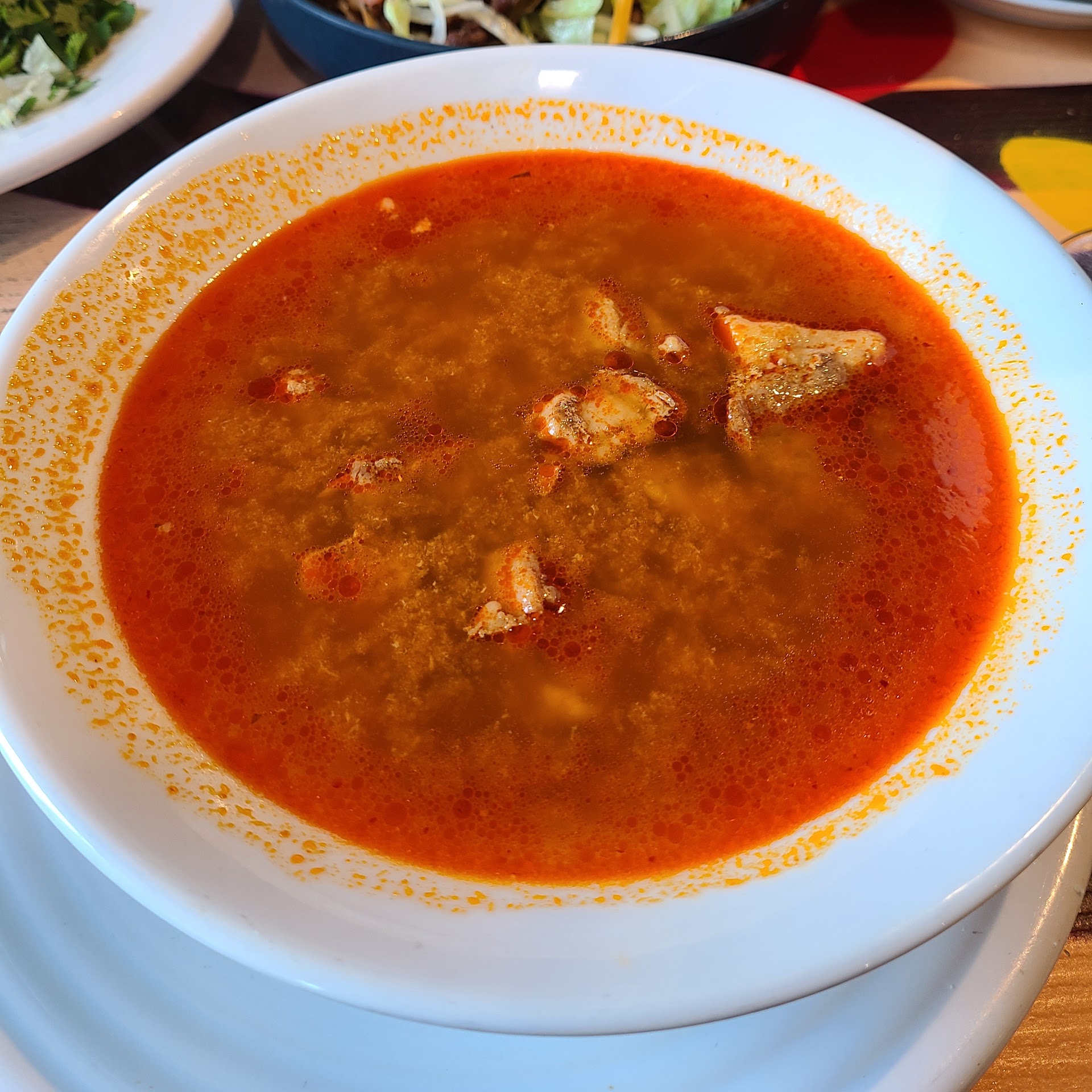 The pozole was pretty good, and the meat was very tender so that made up for the fact that the soup itself was fairly average (well-seasoned but didn't taste any better than other pozole). The nachos were freshly made which I could tell based on the traces of frying still there after placing all the ingredients on top of the nachos. There was a fair amount of meat which was a good thing, and within one bite, one had to work hard to ensure everything was on the nachos, which was why extra nacho chips were nice because one could scoop from the top if they felt like they didn't get enough of the cheese or the sour cream if they already got a lot of meat from beneath everything else. As much as there was a lot of meat, the steak was pretty hard, so I am hoping they didn't use a thicker cut like an eye round.