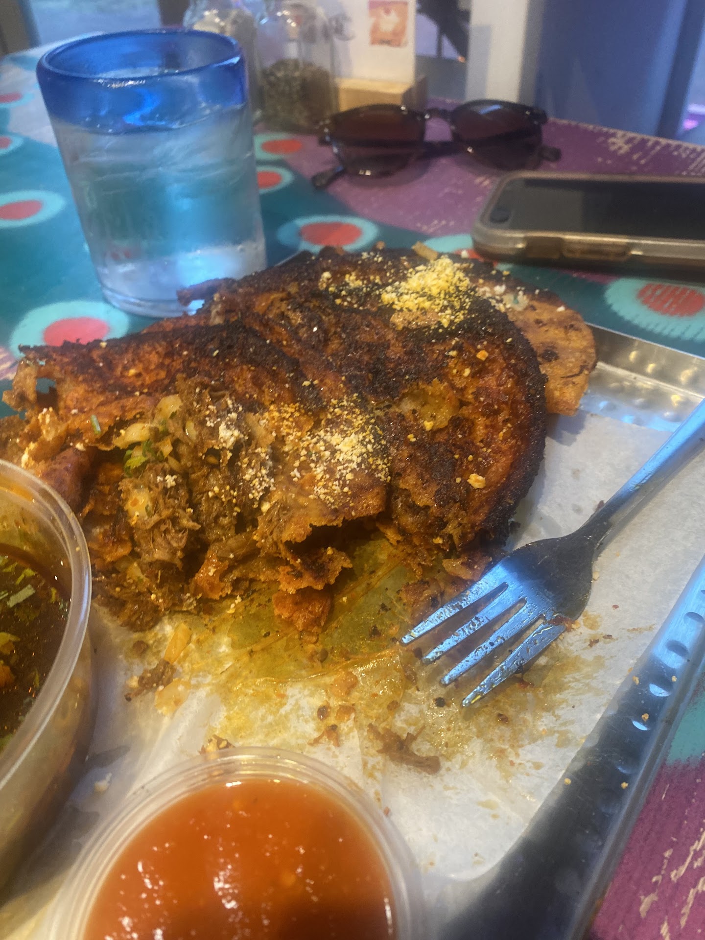 Read moreWhat a disappointment!!! I am still in shock! So we sit down at 7:00 pm before the Usher concert. Our party consisted of 3 people eating and 2 just drinks. We place our orders one of my friends couldn’t get the liquor or beer they wanted but we made it work. By 7:30 pm we still had no water, alcoholic drinks or appetizers (it wasn’t busy). Finally after asking 10 mins prior the waiter lets us know they didn’t have any tequila. We responded “your Mexican restaurant has no tequila at all? “ he said “yes! The Usher concert the day before cleaned us on! There is no tequila in this building at all!!!!” We said okay. Then 5 mins later the people sitting right next to us got the tequila flights. We confirmed with them that is was tequila. Then our food came. My shrimp tacos no issues. But when my partners “birria tacos” came out……. Originally she didn’t say anything about the appearance, she actually tried to enjoy it…. But it was even more burnt in the inside somehow… when we brought it to the waiters attention he goes “well they ALWAYS look like that and nobody ever complains.”It was 8pm by this time. Mind you we watched our waiter at the bar laughing and having a good time with his friends that came in 20 mins after us and sat at the bar. They got all their drinks, food and were out the door before us.