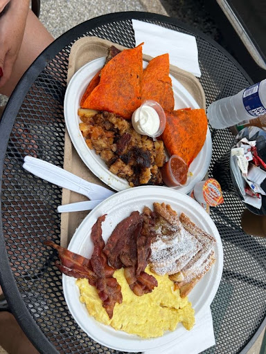 My bf got the French toast with scrambled eggs and bacon. I asked him for his assessment and he said, "It was all amazing. I don't have time to think of a witty review." Thank goodness he has me. Anyway, my bf was deciding between the pancakes and french toast...the guy working said the french toast was the way to go. I didn't try it but my bf was absolutely raving about how delicious they were. I did try the bacon though and that was perfectly crispy.