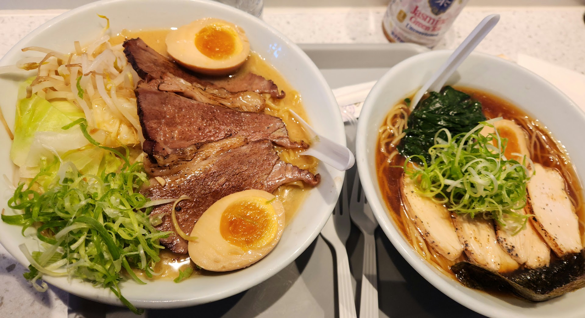 I ordered the Meatless Ramen (as I am a vegetarian). I customized it a bit. My girlfriend ordered the Shoyu Ramen. The lady at the counter was extremely friendly! She gave us a buzzer, and we went to our table. When the buzzer went off, we went to the counter, and the same lady was carrying our bowls on a tray. I reached out to grab it, but she insisted on bringing it to our table for us! This gesture was super kind, especially considering the Marketplace is more of a foodcourt than a restaurant.