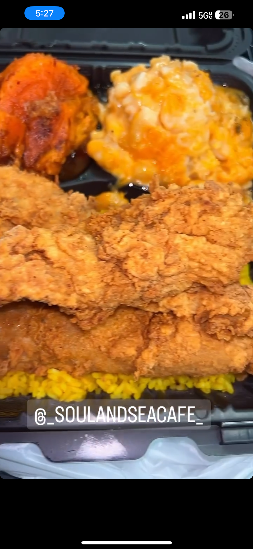 Read moreThis is my second time here. Very good food/quantity for your money!! I haven’t tasted anything I ordered that I didn’t like!! Not sure what that house sauce in the small container is but it is soo good!! Not sure if it was the owner but a woman came in while my order was being prepared and had pretty good customer service. Only reason I took away a star was because the guy that took my order didn’t explain to me that there were quite a few other things they had available outside of what was on the menu. I only found out because the woman that came in and took someone else’s order explained that. Don’t get me wrong, I’m very satisfied with my food. Just would have chosen one of the other options, as they had stuffed chicken breast, crab cakes, etc. So it’s more so an employee training thing or keep the menu updated. Outside of that, I DEFINITELY recommend this spot and it will be one of my top go to’s for soul food from now on!! Sorry my pic is blurry. It’s a screenshot from a video 🤣