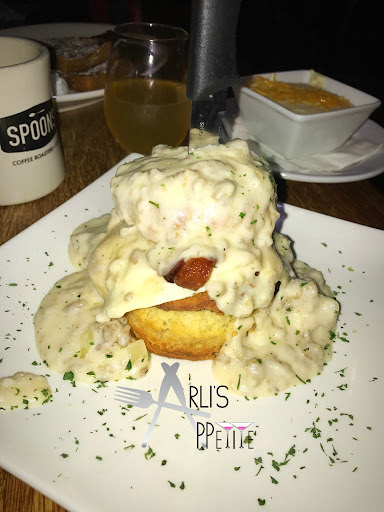 Read moreMy favorite brunch buddy and I are up early on Sunday morning, I mean early like 8:00 am. We're ready to eat early too but most of the restaurants we frequent don't open until 10:00 or 11:00 am. Last Sunday, however, my friend wanted grits and I told her that I had the best cheesy grits at Spoons Café in Federal Hill, Baltimore. We googled the hours and luckily they open at 8:00 am. We arrived at Spoons around 8:45 and half of the restaurant seating was already occupied. The hostess sat us quickly towards the rear of the restaurant at a two-seat table adjacent to the kitchen. Spoons is a quaint restaurant space that looks like it could have been a house converted into a restaurant.