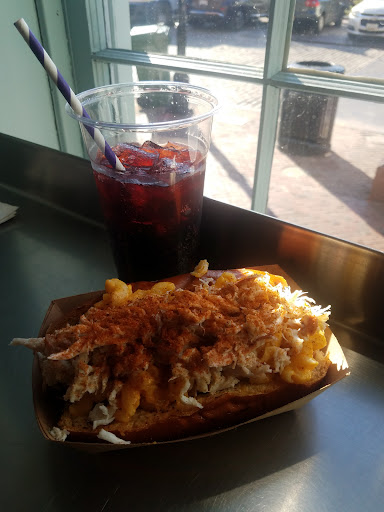 We talked about the weekly specials, and my son told me about all the most popular hot dogs that they serve. If you've frequented Camden yard, Ravens stadium, Capital one arena, or CFG Bank arena you already know. So I ordered the Crab Mac n cheese dog and chicken wings. I was delighted, and I'm hard to impress, but the taste and quality of the food is top notch. However, while waiting for our order, Matt gave us a complimentary serving of a new menu item. Garlic parmesan fries. The garlic fries 🤘🏻 were really good, and between the three of us, we finished them all and wished we had more. There are so many options and choices that all look very appealing... sammies, sides, fries(duck fat fries), burgers, and wings, to name a few. My crab mac was as delicious as the hype about this place for good price. This place rocks! High quality and a large assortment of hotdogs and burgers to keep you entertained. You just can't be health conscious to eat here. Each item probably takes a year off your life. But it's sooo worth it. For me, the big wow is how darn good the atmosphere is here. I had a nice experience at Stuggys gourmet dogs! This is a great place for hot dogs or Saturday night trivia from 7-9 PM. Stuggys a bare-bones fast-food spot serving franks & sausages with diverse toppings, plus burgers & fries. Easily deserves a 5 stars. OhMyGosh ‼️ Matt makes a...