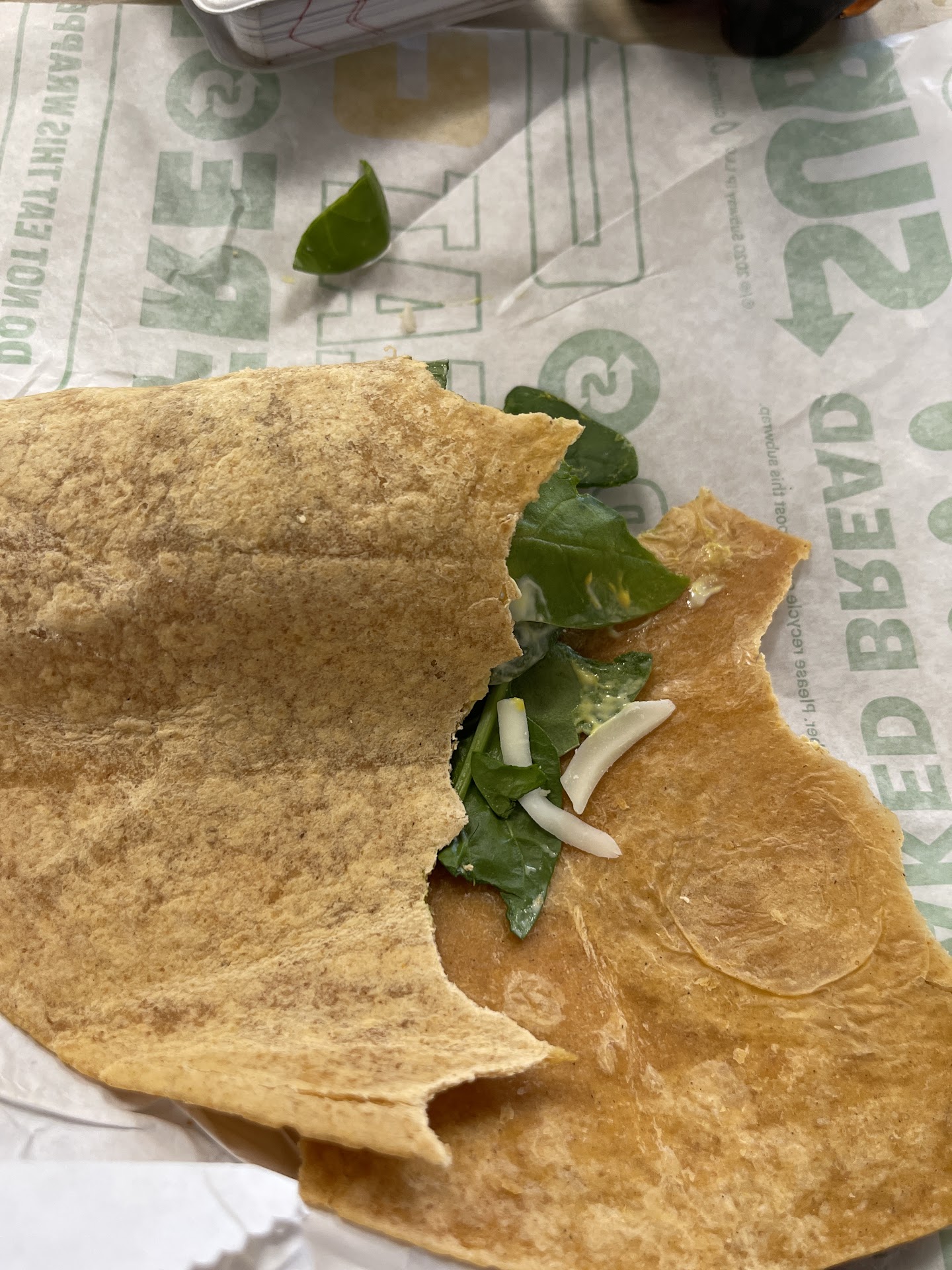 I had the roast beef on a tomato-basil wrap. Eaten together, with mayo, provolone, yellow mustard, mozzarella, it was semi-edible. Taken apart, the "roast beef" have been the problem, bland, maybe old, then I had the "wrap" by itself. Wow, that was gross. I am going to save the other half, in case Armageddon hits before dinner time and I am...